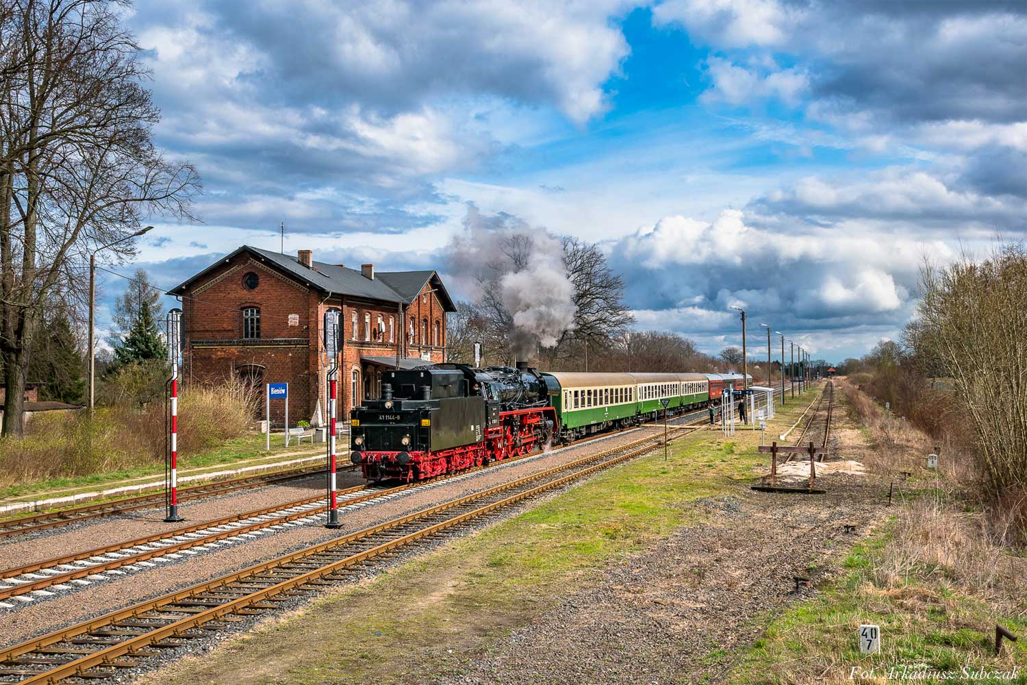 km 104,730 der Strecke Jelenia Góra [Hirschberg (Riesengeb) Hbf] 0,0 - Lwówek Śląski (Löwenberg in Schlesien) 32,636 - Zebrzydowa (Siegersdorf) 61,030 - Żagań (Sagan) 104,730 | ||