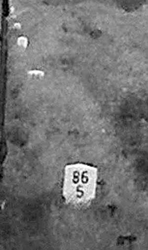 Detail - km 86,5 am Einfahrvorsignal Va von Rokitki (Reisicht) und weitere Steine