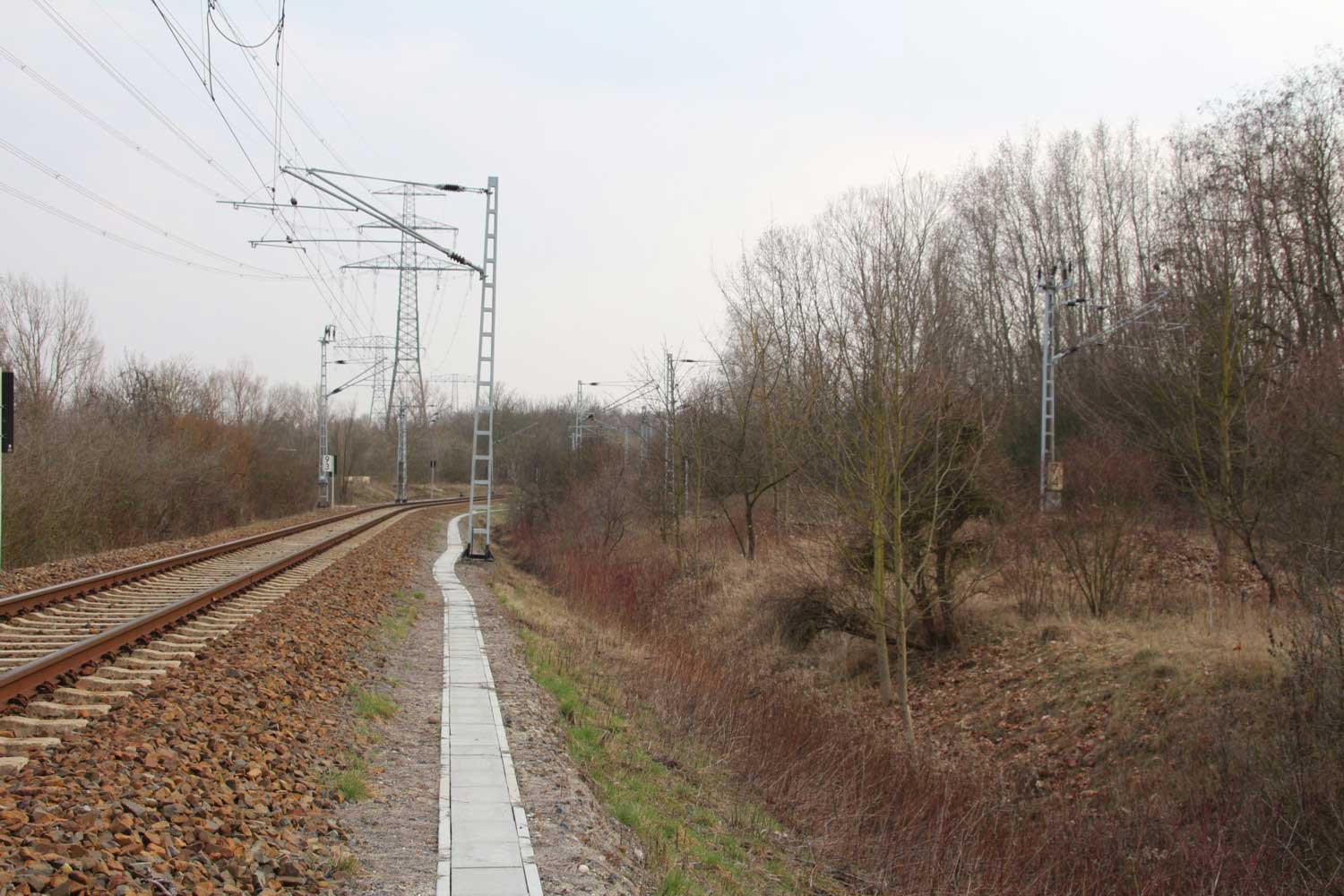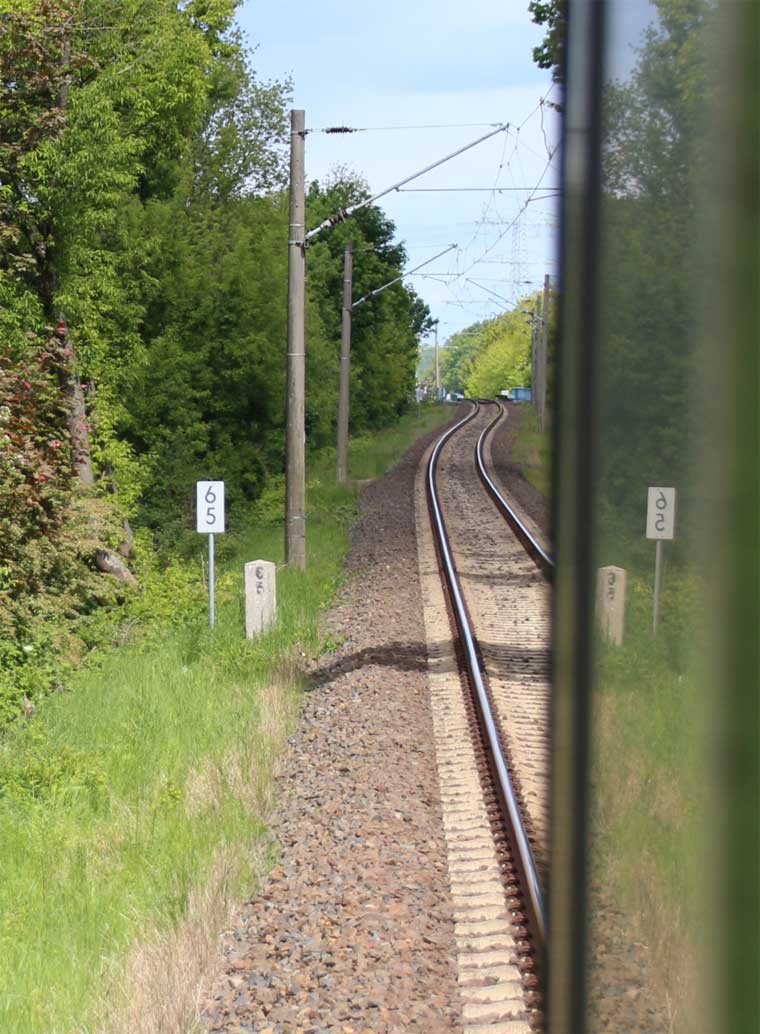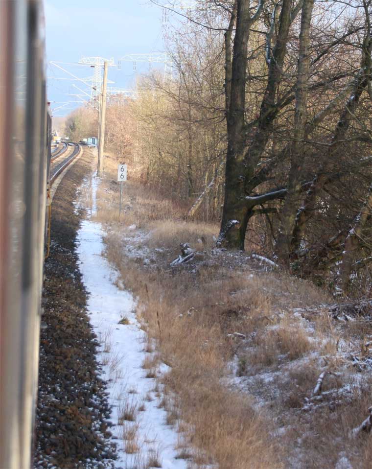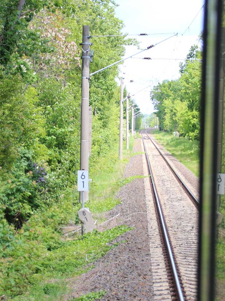 km 4,2 (Tafel am Oberleitungsmast) gehört zum Gegenrichtungsgleis der Strecke