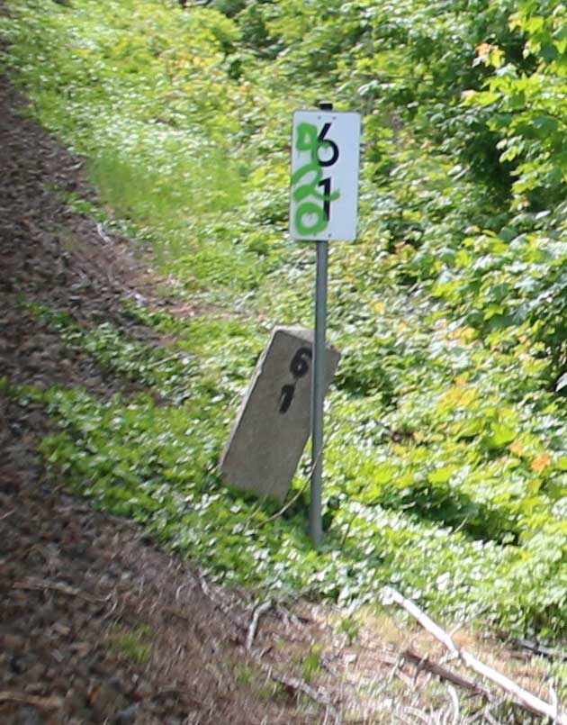 km 4,4 (Tafel oben) gehört zum Richtungsgleis der Strecke