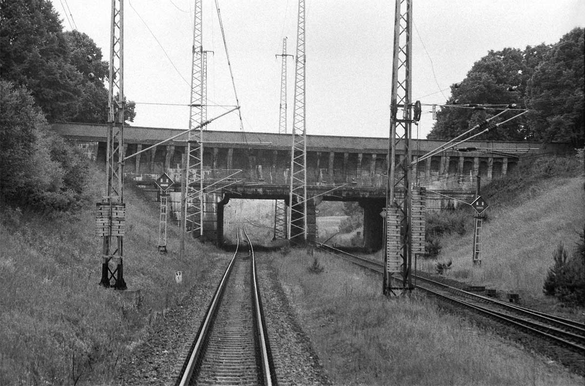 Berlin Nordbf -0,28 - Grenze Berlin West/DDR 2,74 (Streckenunterbrechung) - Berlin-Pankow 5,60 - Angermünde 70,67 - Grenze DDR/Polen 119,585 = km 10,069 - Szczecin Gumieńce (Scheune) 0,116