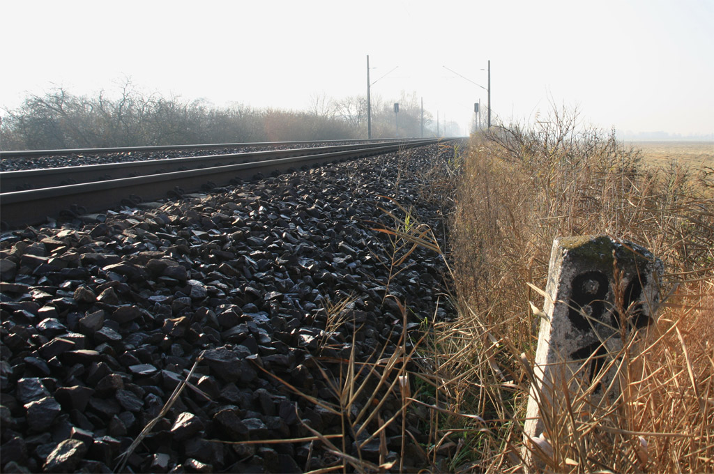 Rechts km 0,0 der Anschlussbahn zum PCK Schwedt