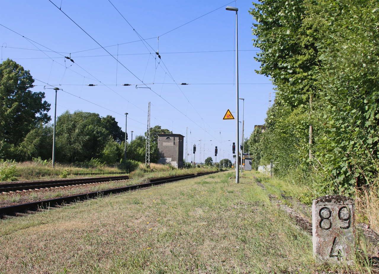 km -1,82 der Verbindungsstrecke zur Nordbahn [Berlin Nordbahnhof (alt) 0,0 - Neustrelitz 98,53 - Neubrandenburg 133,73 - Stralsund 222,64 (kommend)/223,60 (gehend) - Saßnitz 272,72 - Saßnitz Hafen 274,46] | ||
