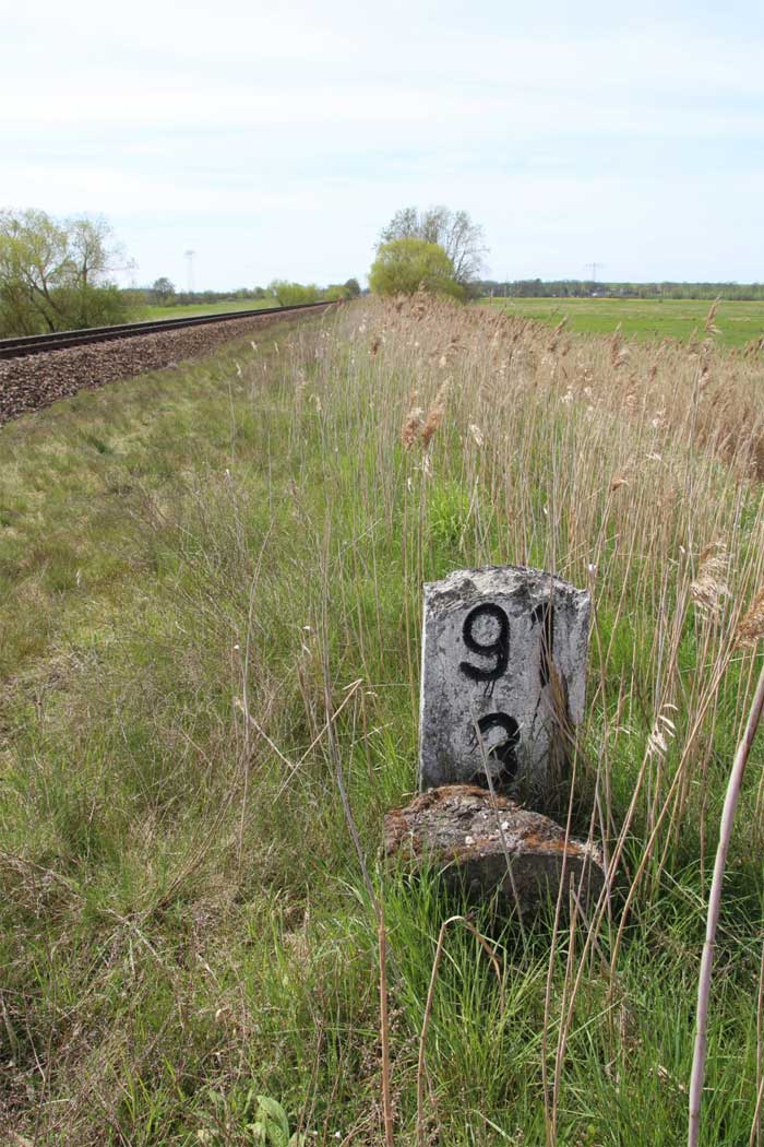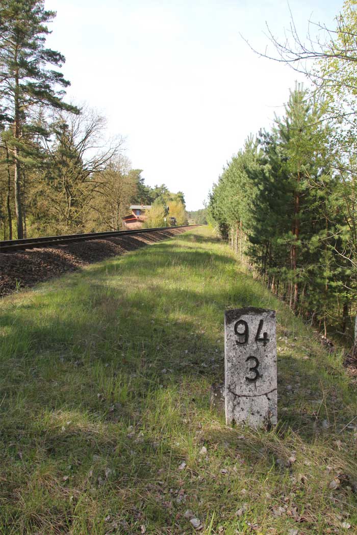 km 95,4 (Stein und Tafel) zwischen Schönow (Uckermark) und Casekow