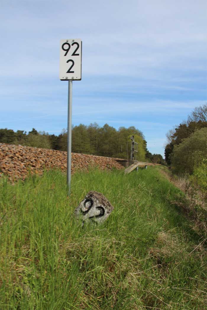 ► | km 50,02 der abgehenden Strecke (Berlin Stettiner Bf -0,28) - Britz 50,02 - Templin 92,68 - Fürstenberg (Havel) 123,19 mit weiterlaufender Kilometrierung (Streckenverzweigung mit gemeinsamen Nullpunkt Berlin Stettiner Bf) | |