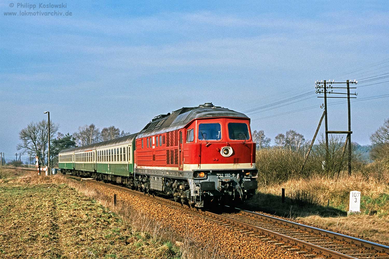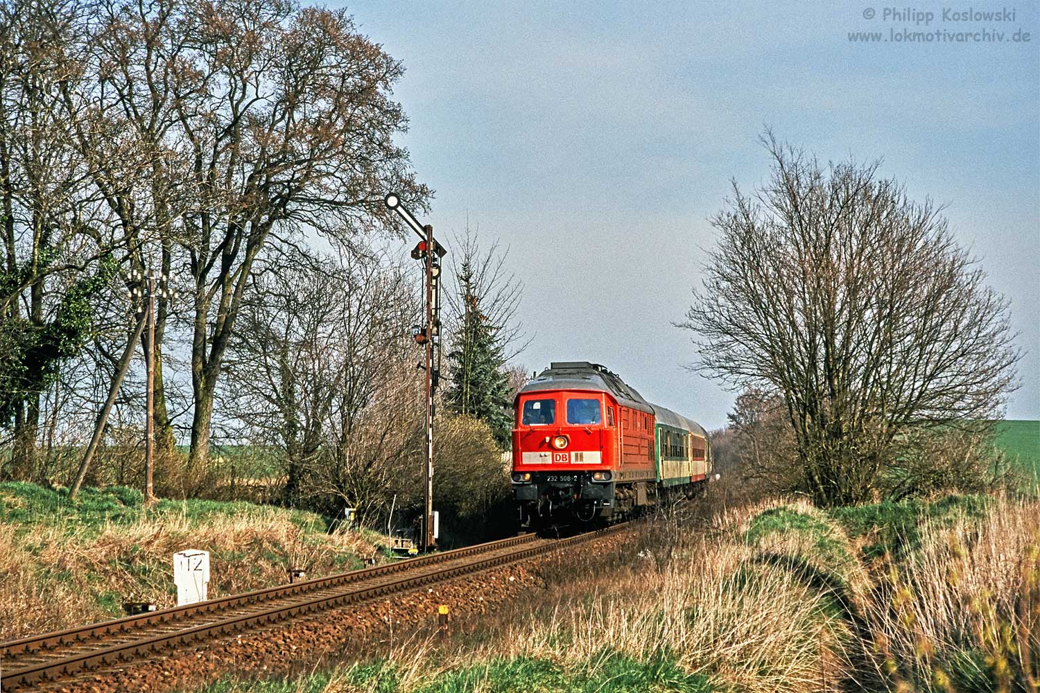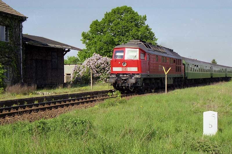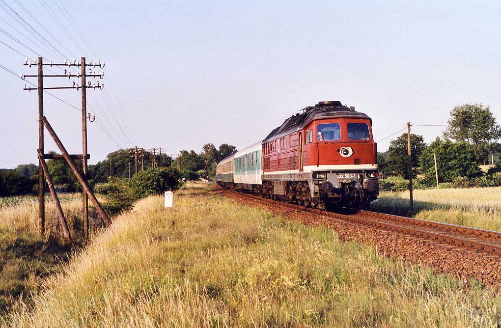km 114,4 bei Radekow - 232 406 mit RB 5925 auf der Fahrt von Stettin in Ri Angermünde