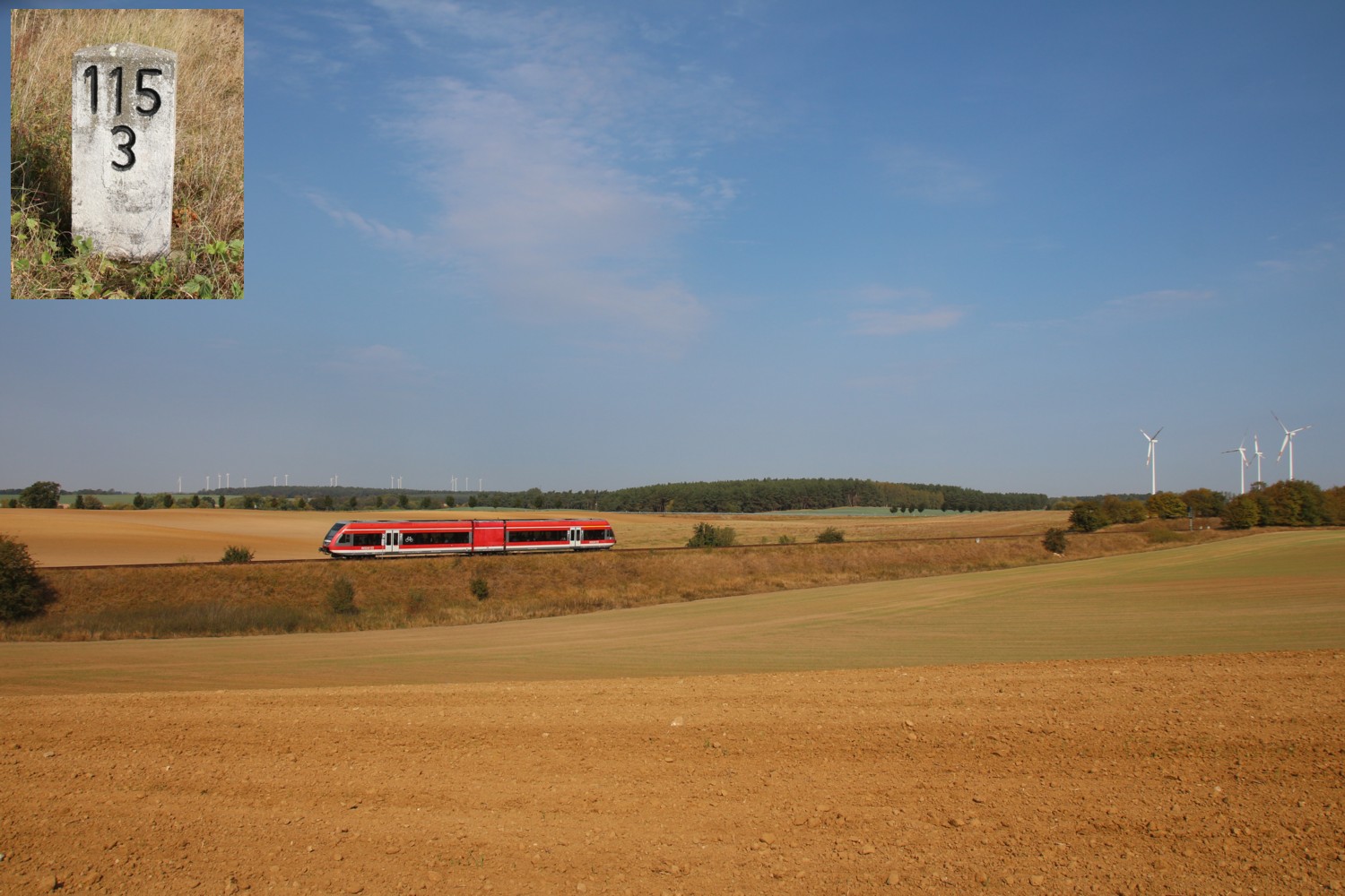 ► | km 50,02 der abgehenden Strecke (Berlin Stettiner Bf -0,28) - Britz 50,02 - Templin 92,68 - Fürstenberg (Havel) 123,19 mit weiterlaufender Kilometrierung (Streckenverzweigung mit gemeinsamen Nullpunkt Berlin Stettiner Bf) | |
