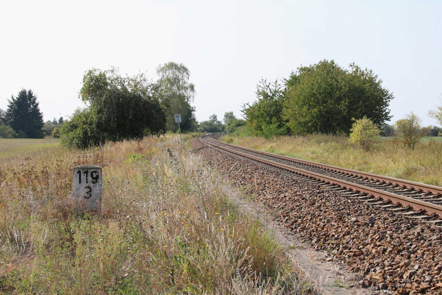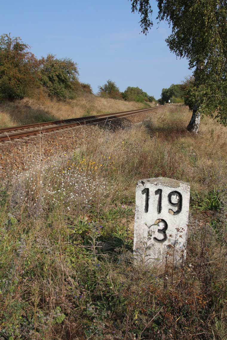 ► | km 45,24 der abgehenden Strecke (Berlin Stettiner Bf -0,28) - Eberswalde Hbf 45,24 - Werbig Abzw. 101,17 - Frankfurt (Oder) Pbf 131,11 mit Abzweig Werbig Abzw. 101,17 - Werbig Gbf 102,54 (auch Angabe 102,66) mit weiterlaufender Kilometrierung (Streckenverzweigung mit gemeinsamen Nullpunkt Berlin Stettiner Bf) | |