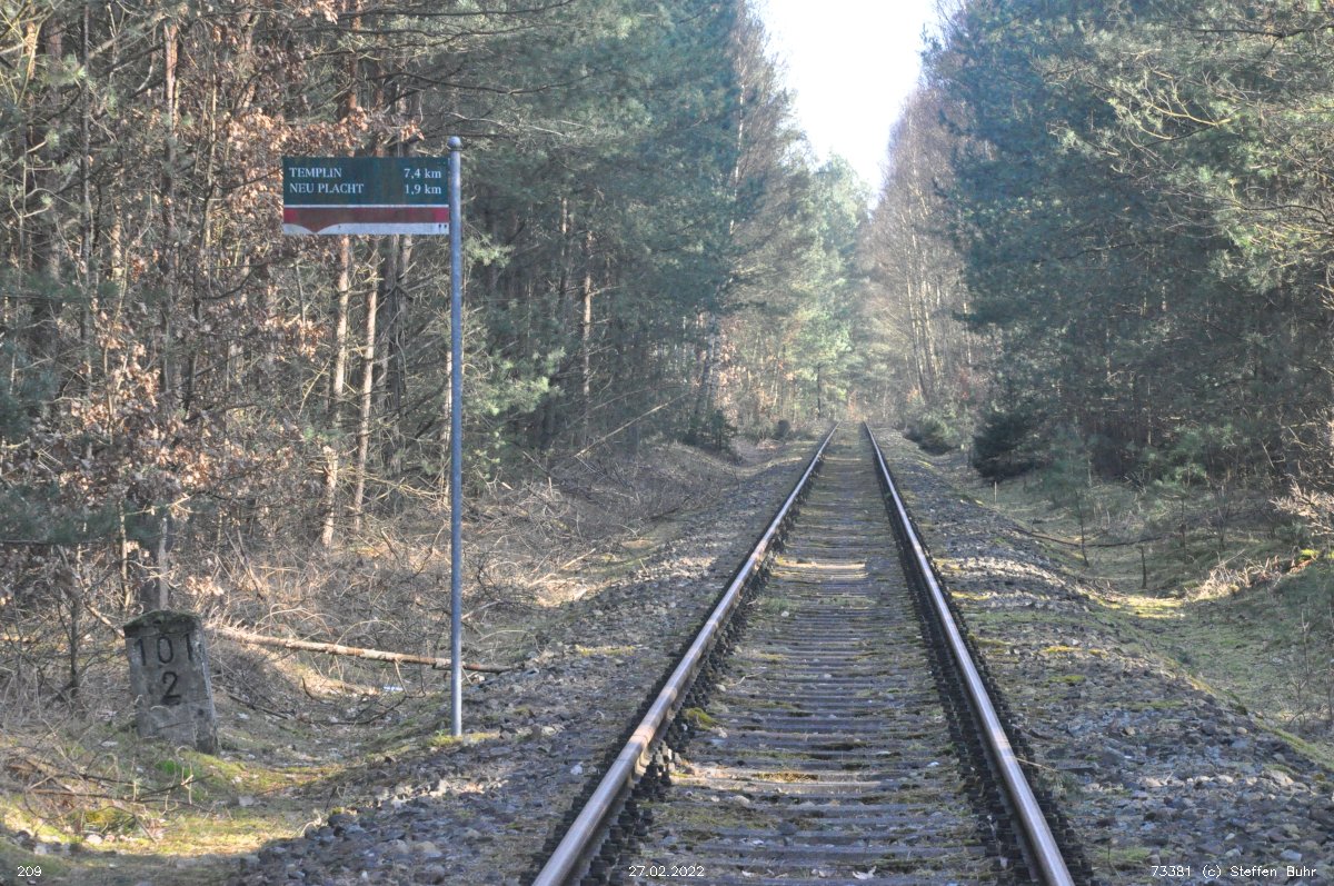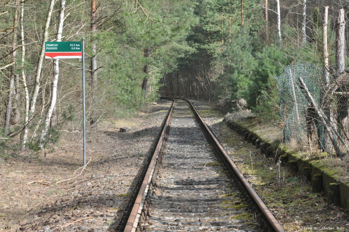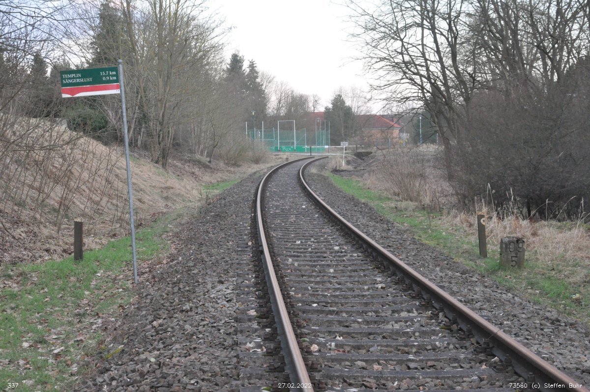 Templin Vorstadt | 91,30 | km 78,70 der Strecke (Berlin Eberswalder Straße 0,01) - Löwenberg (Mark) 44,25 - Templin 77,32 - Fährkrug 82,30 - Prenzlau 119,42 |