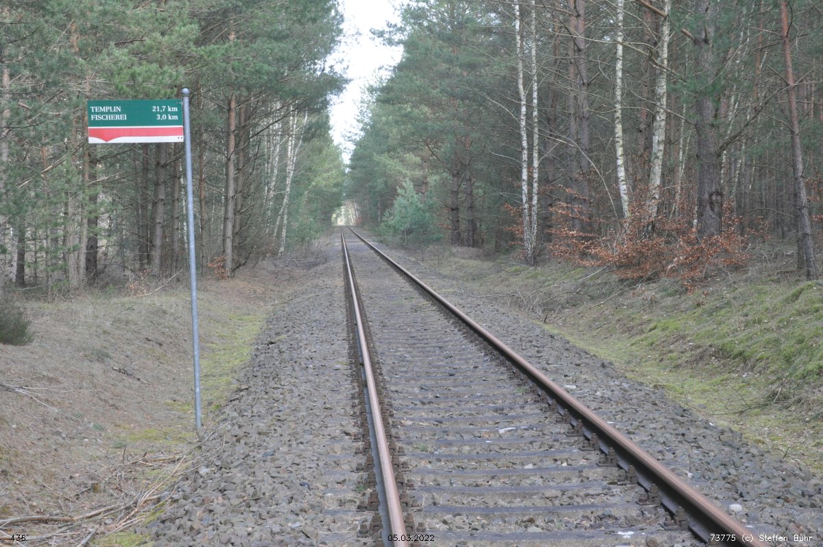 Templin | 92,68 | km 77,32 der Strecke (Berlin Eberswalder Straße 0,01) - Löwenberg (Mark) 44,25 - Templin 77,32 - Fährkrug 82,30 - Prenzlau 119,42 |