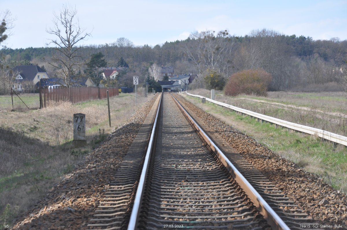 (Berlin Stettiner Bf -0,28) - Eberswalde Hbf 45,24 - Werbig Abzw. 101,17 - Frankfurt (Oder) Pbf 131,11 mit Abzweig Werbig Abzw. 101,17 - Werbig Gbf 102,54 (auch Angabe 102,66)