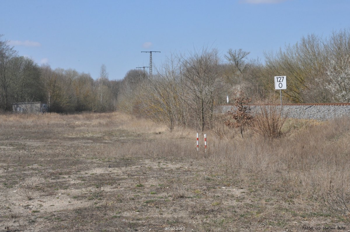 km 127,7 (Stein und Tafel) zwischen Booßen und Frankfurt (Oder) - Blick Richtung Eberswalde