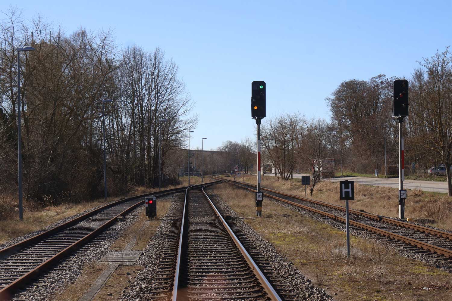 km 210,5 in Wolgast Hafen - Blick Richtung Züssow