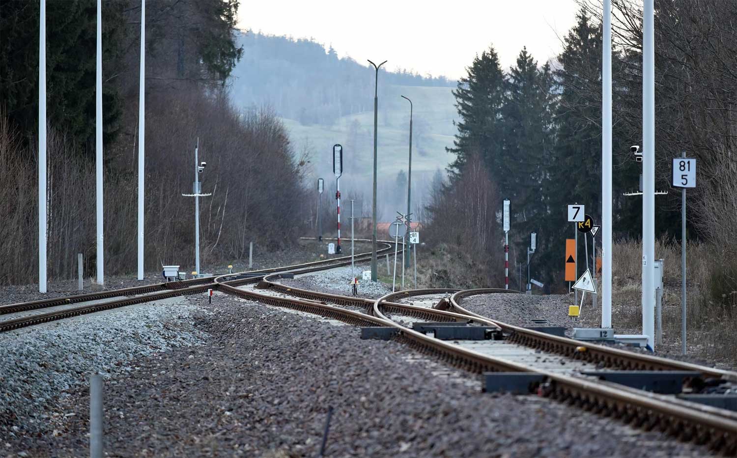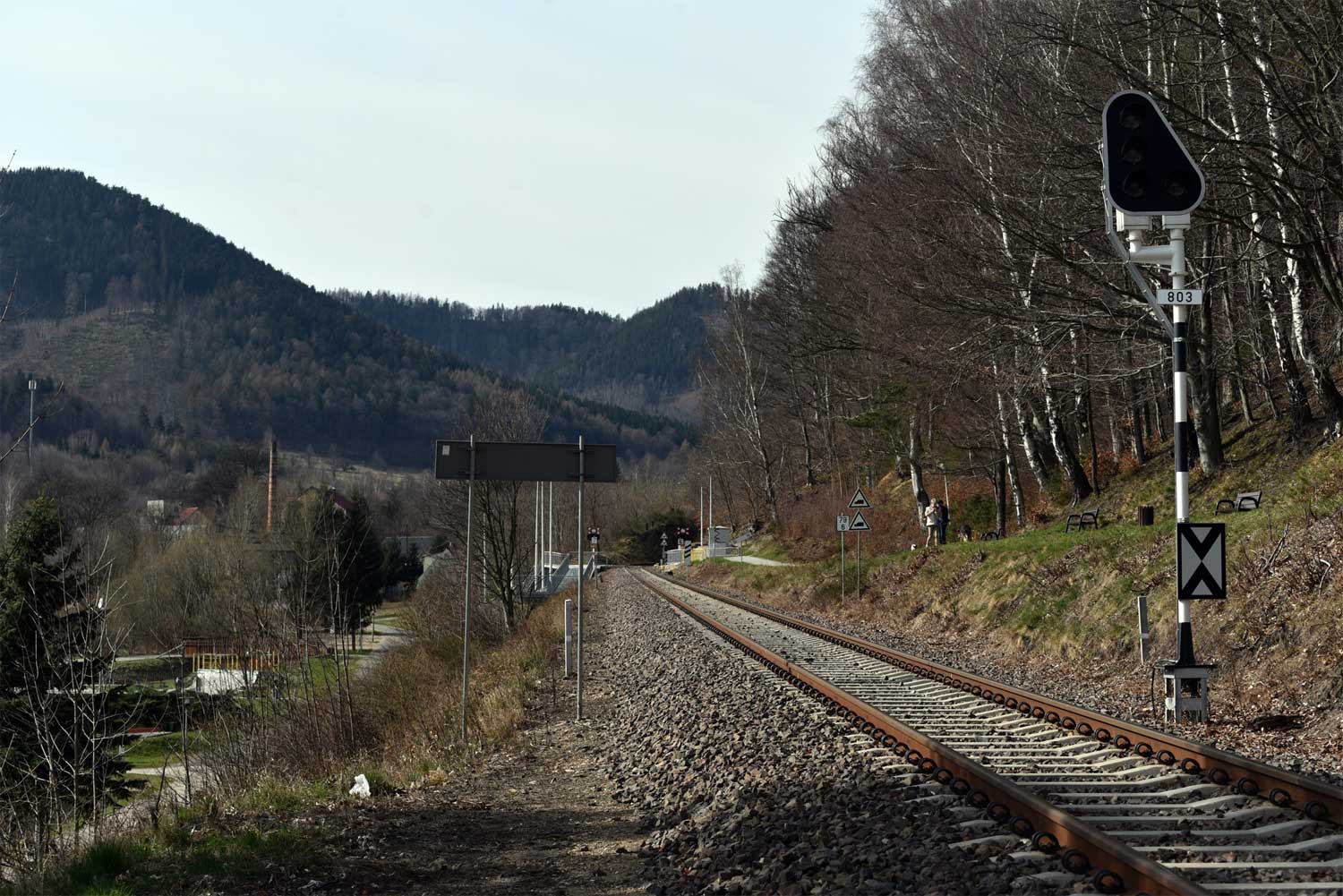 km 80,7 (am Signal) zwischen Jedlina-Zdrój Centrum und Jedlina Zdrój (Bad Charlottenbrunn) - Blick Richtung Jedlina Zdrój (Bad Charlottenbrunn)