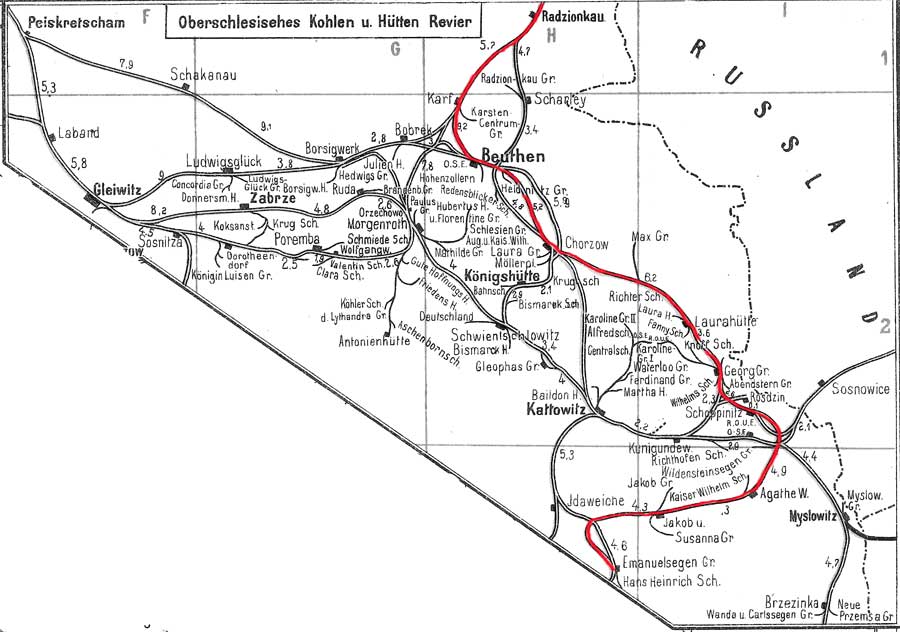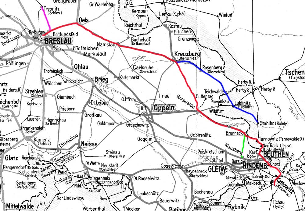 Breslau-Odertor - Kreuzburg (Oberschles) - Brunneck - Tarnowitz - Beuthen (Oberschles) Hbf - Schoppinitz Nord - Emanuelssegen | |