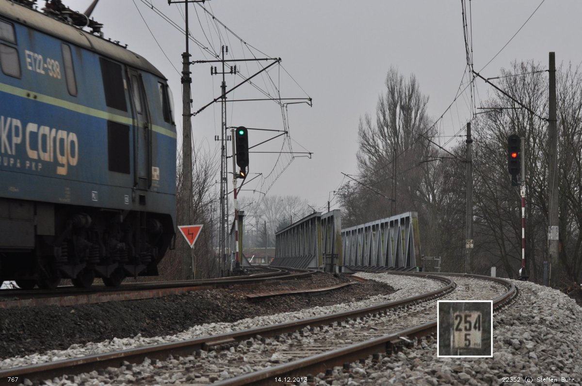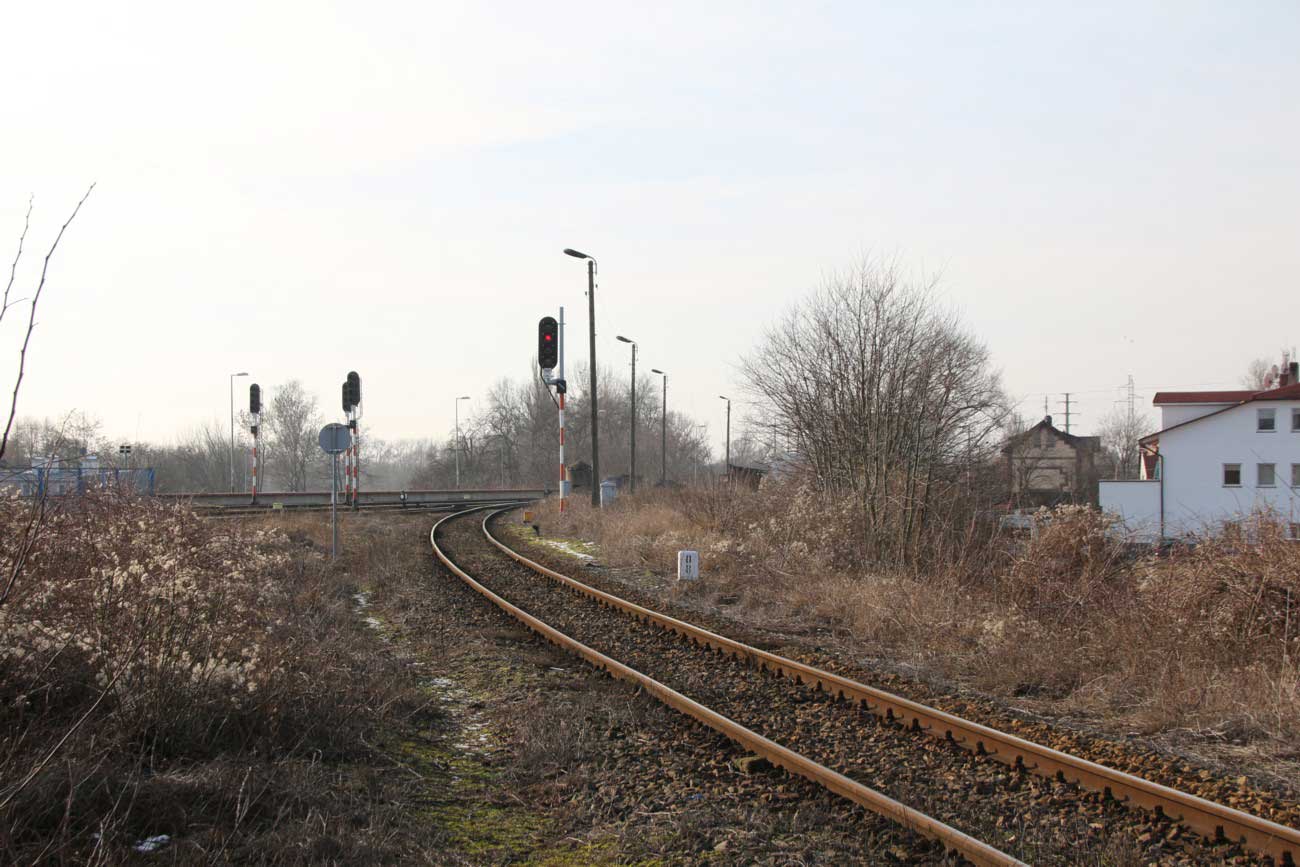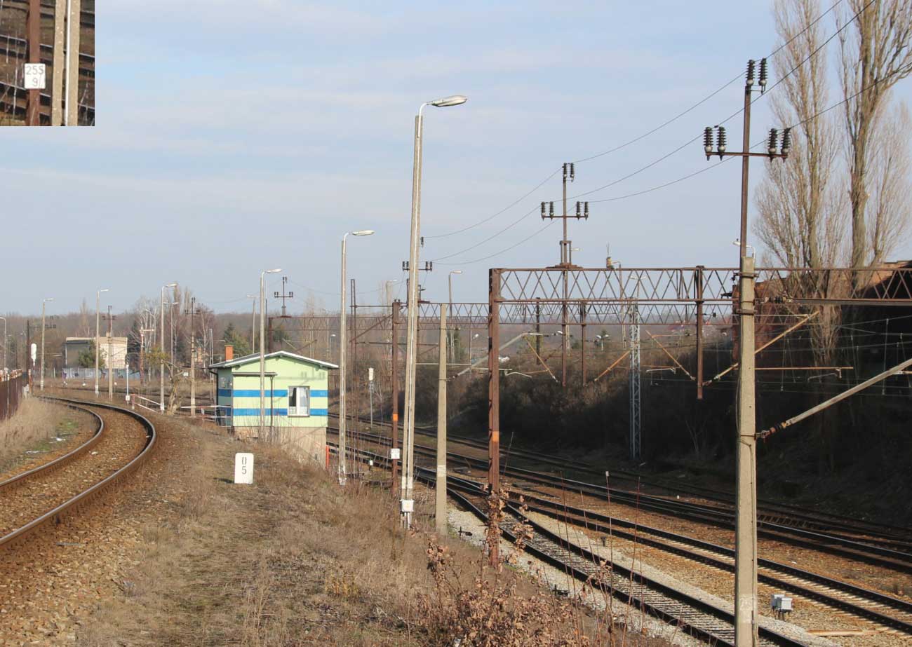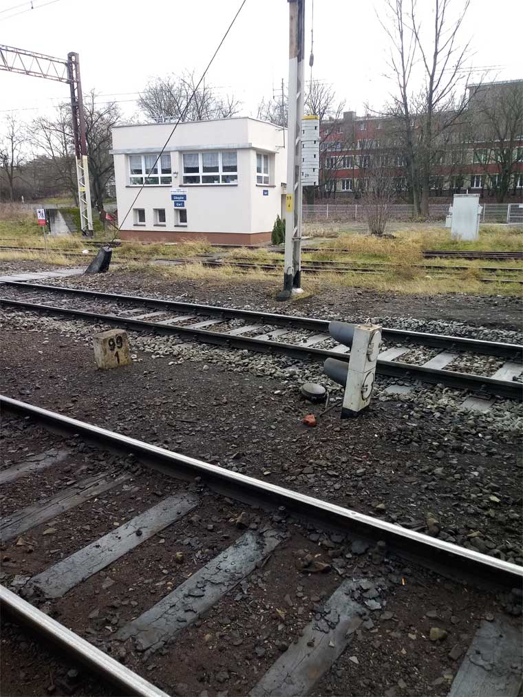 km 0,06 der Strecke Breslau Hbf 0,06 - Oppeln Hbf 81,66 - Heydebreck 123,3 - Gleiwitz Hbf 160,27 - Kattowitz Hbf 187,2 - Eichenau 192,1