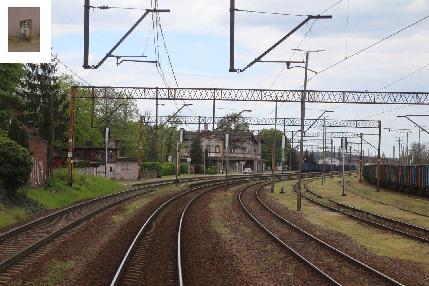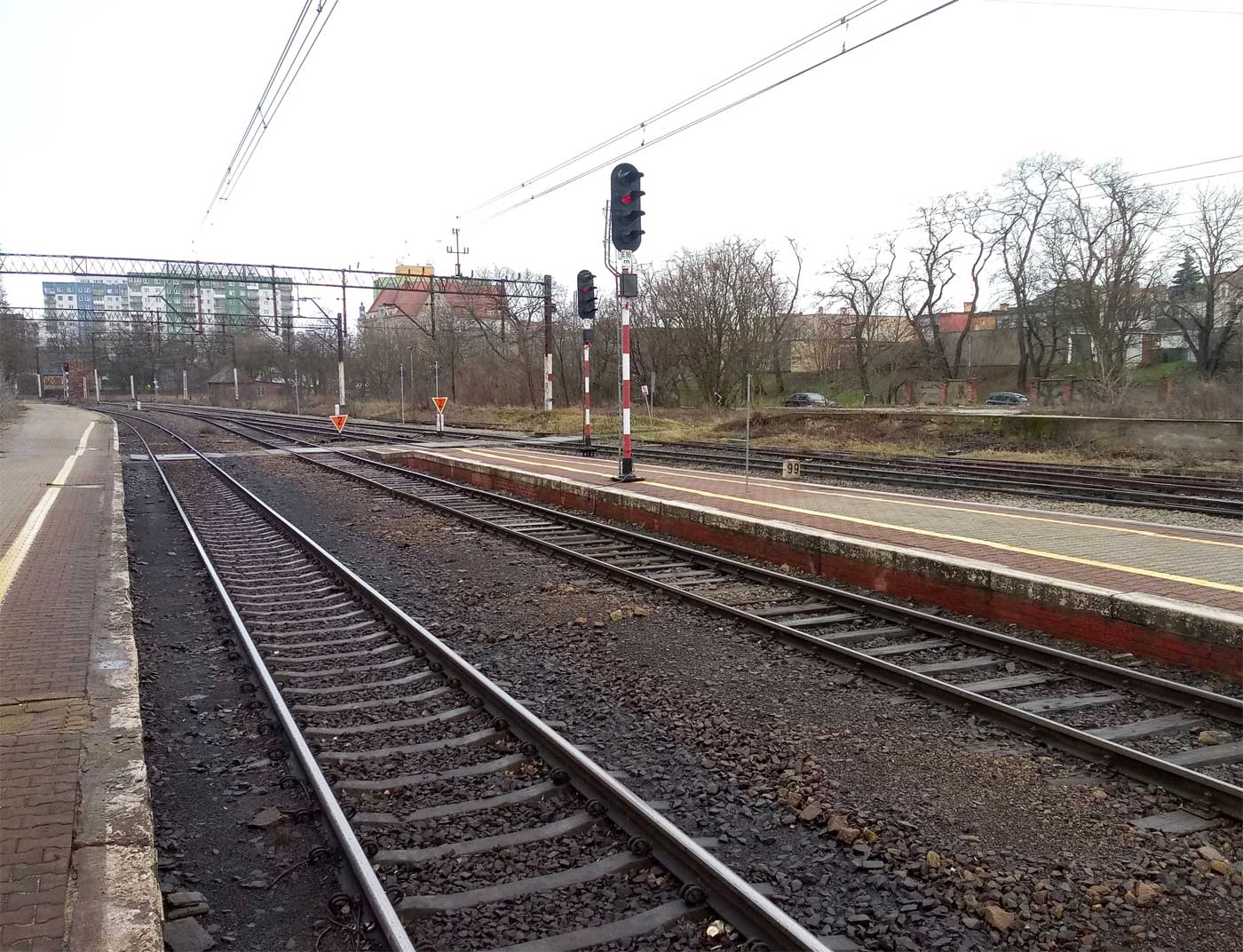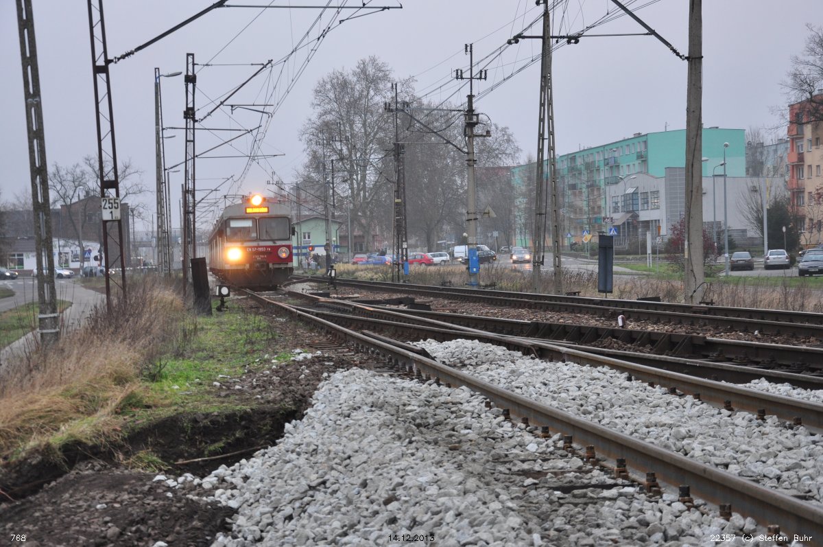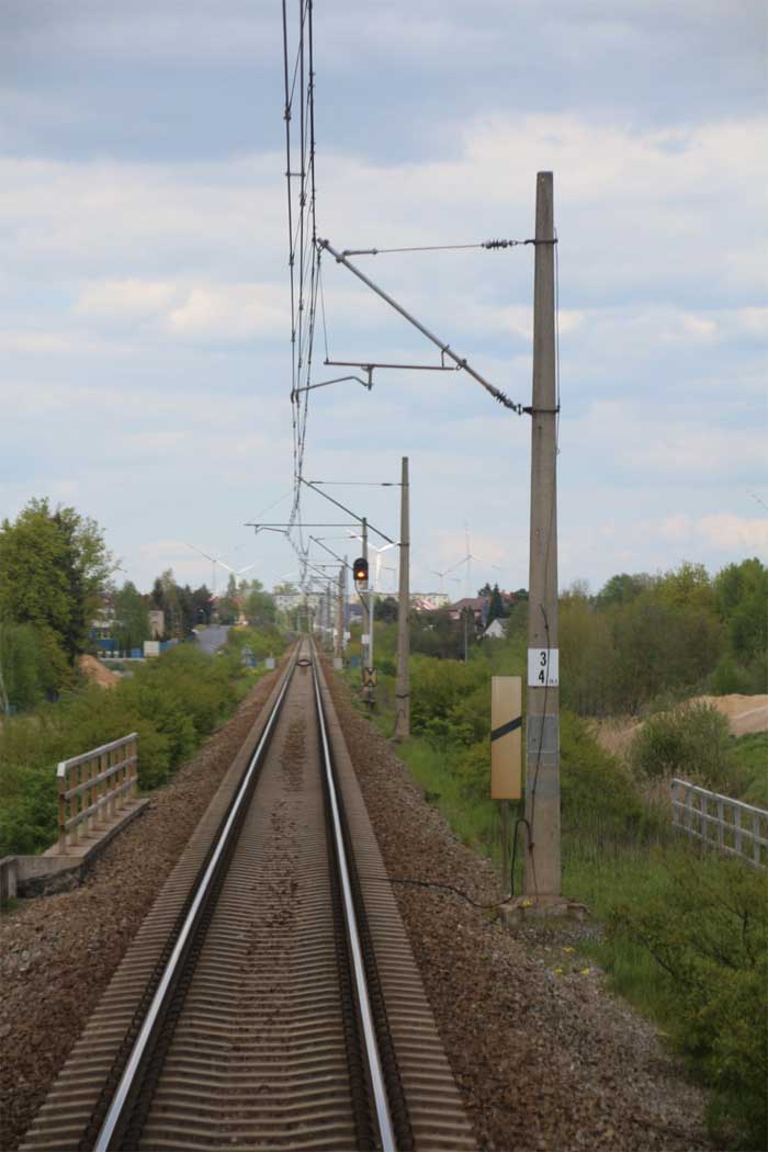 km 0,06 der Strecke Breslau Hbf 0,06 - Oppeln Hbf 81,66 - Heydebreck 123,3 - Gleiwitz Hbf 160,27 - Kattowitz Hbf 187,2 - Eichenau 192,1