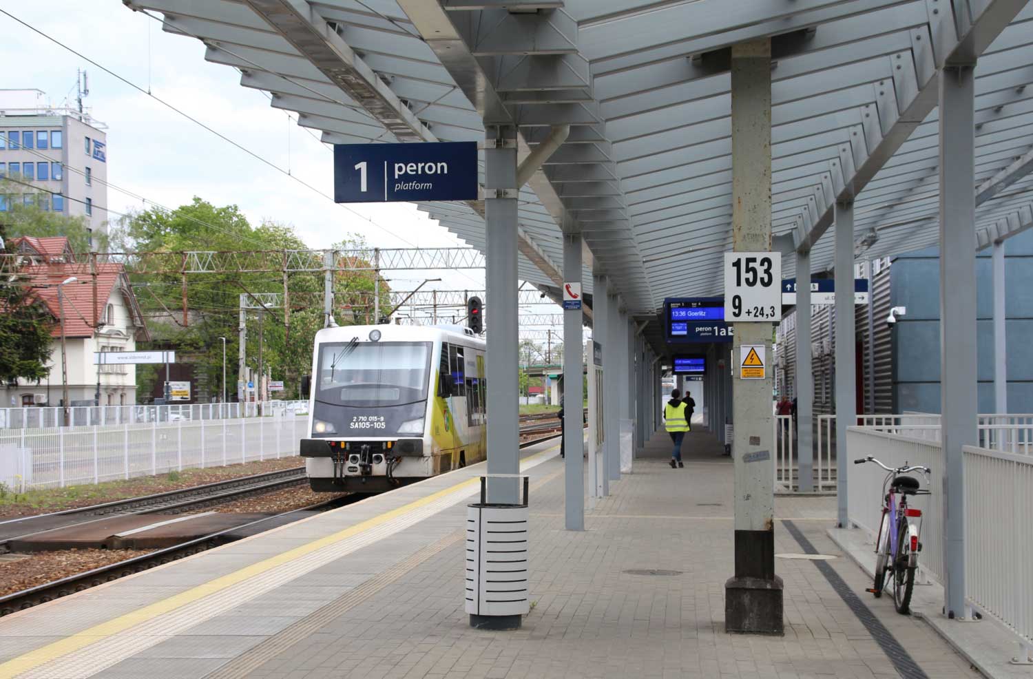 Breslau Hbf 0,06 km 360,21 der Strecke (Berlin Schlesischer Bf 0,10) - Kohlfurt 224,22 - Arnsdorf Bez Liegnitz 285,71 - Liegnitz 295,25 - Breslau-Mariahöfchen 353,36 - Breslau Hbf 360,21