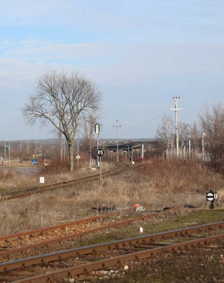 km 21,22 der Strecke [Frankfurt (Oder) Pbf 0,0] - Reppen 21,22 (Abzw. von Strecke 53) - Meseritz 87,36 - Birnbaum 118,5 (bis 1918 durchgehende km-Zählung bis Rokietnice km 181,75)