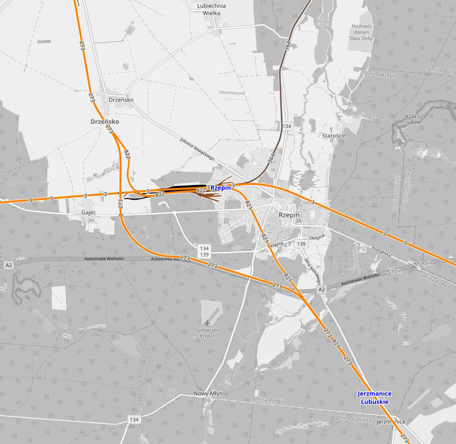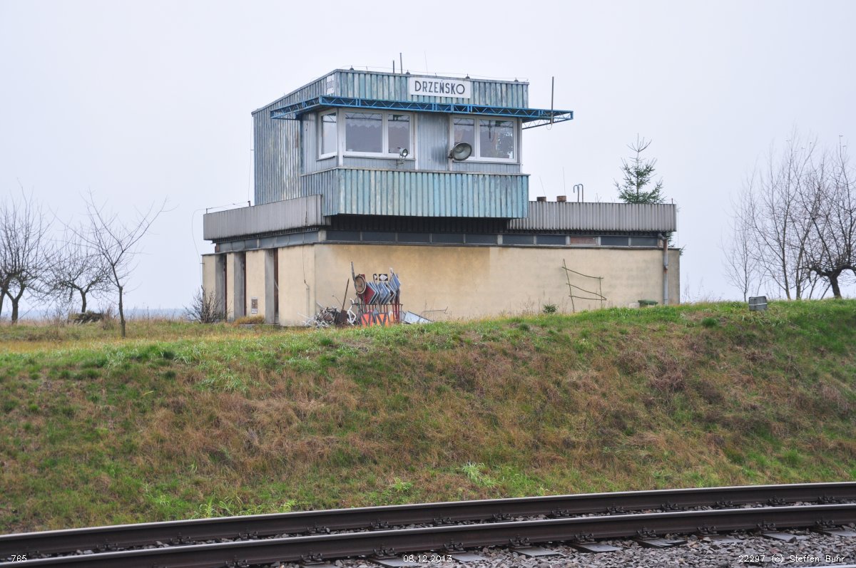 bei km 225,4 zwischen Jermanice Lubuskie (Hermania) und Drzeńsko (podg) (Abzw Drenzig)
