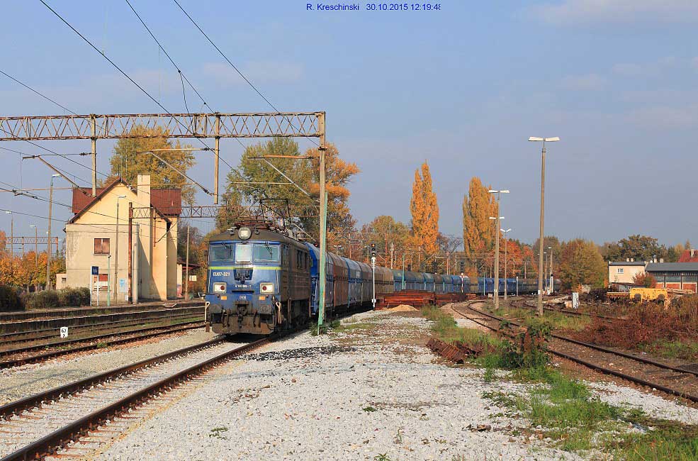 Kattowitz-Idaweiche | 67,38 | km 323,59 der Strecke Warschau Hbf 0,0 - Koluszki 105,194 - Tschenstochau Pbf 229,665 - Kattowitz 317,96 - Tichau 334,49 - Dzieditz 361,71 |