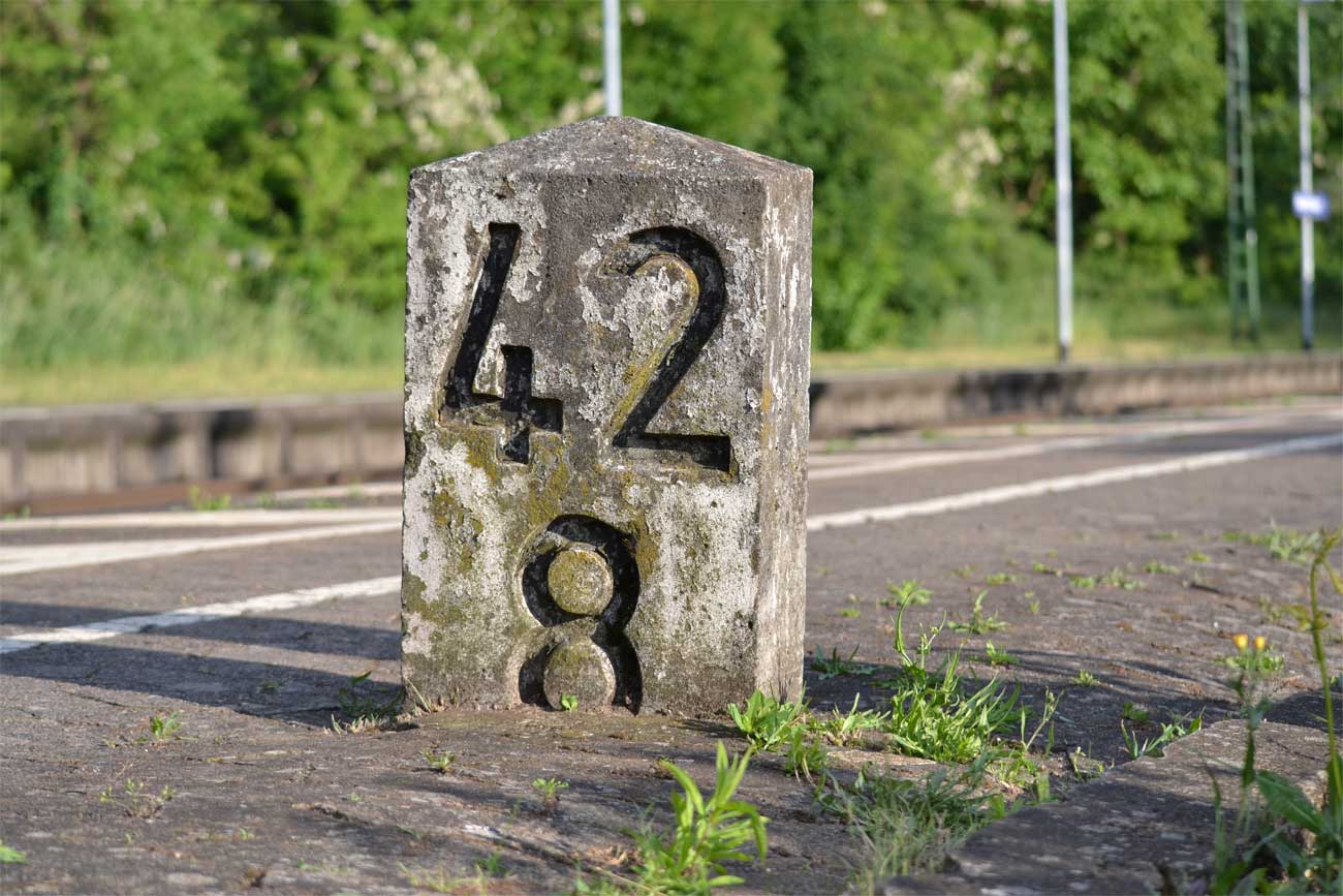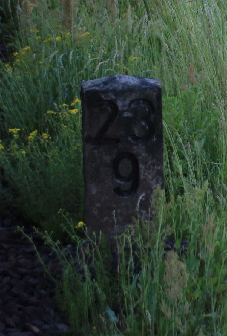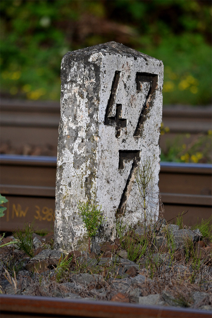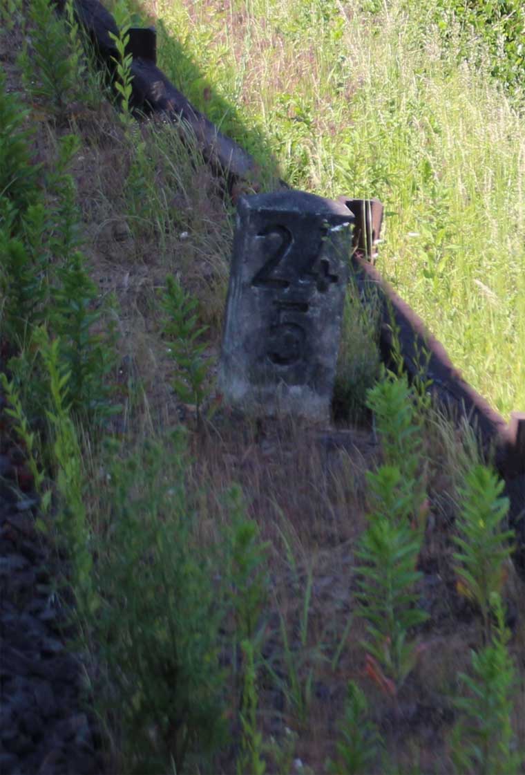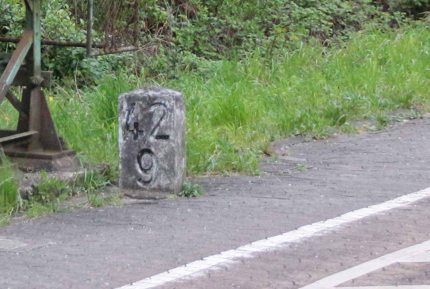 km 9,8 (Stein und Tafel) gehören zur Strecke