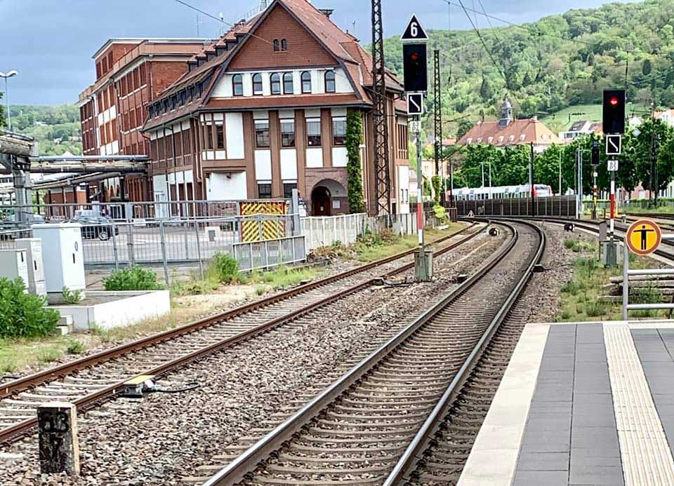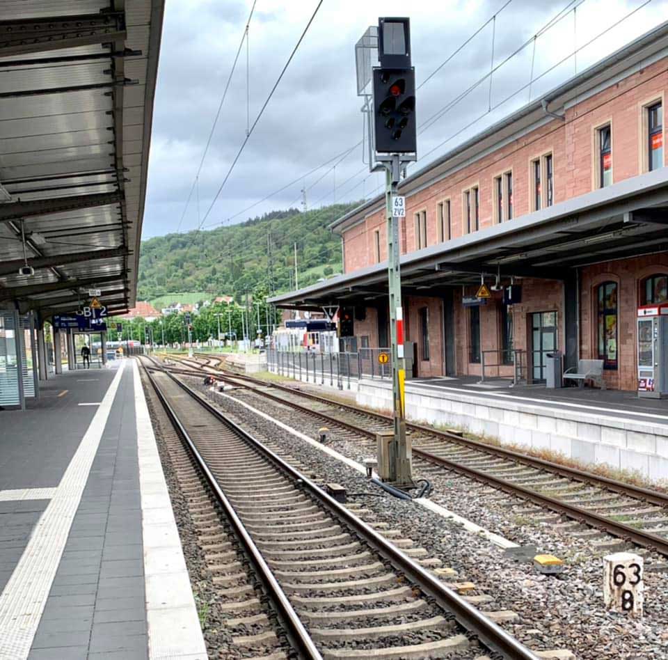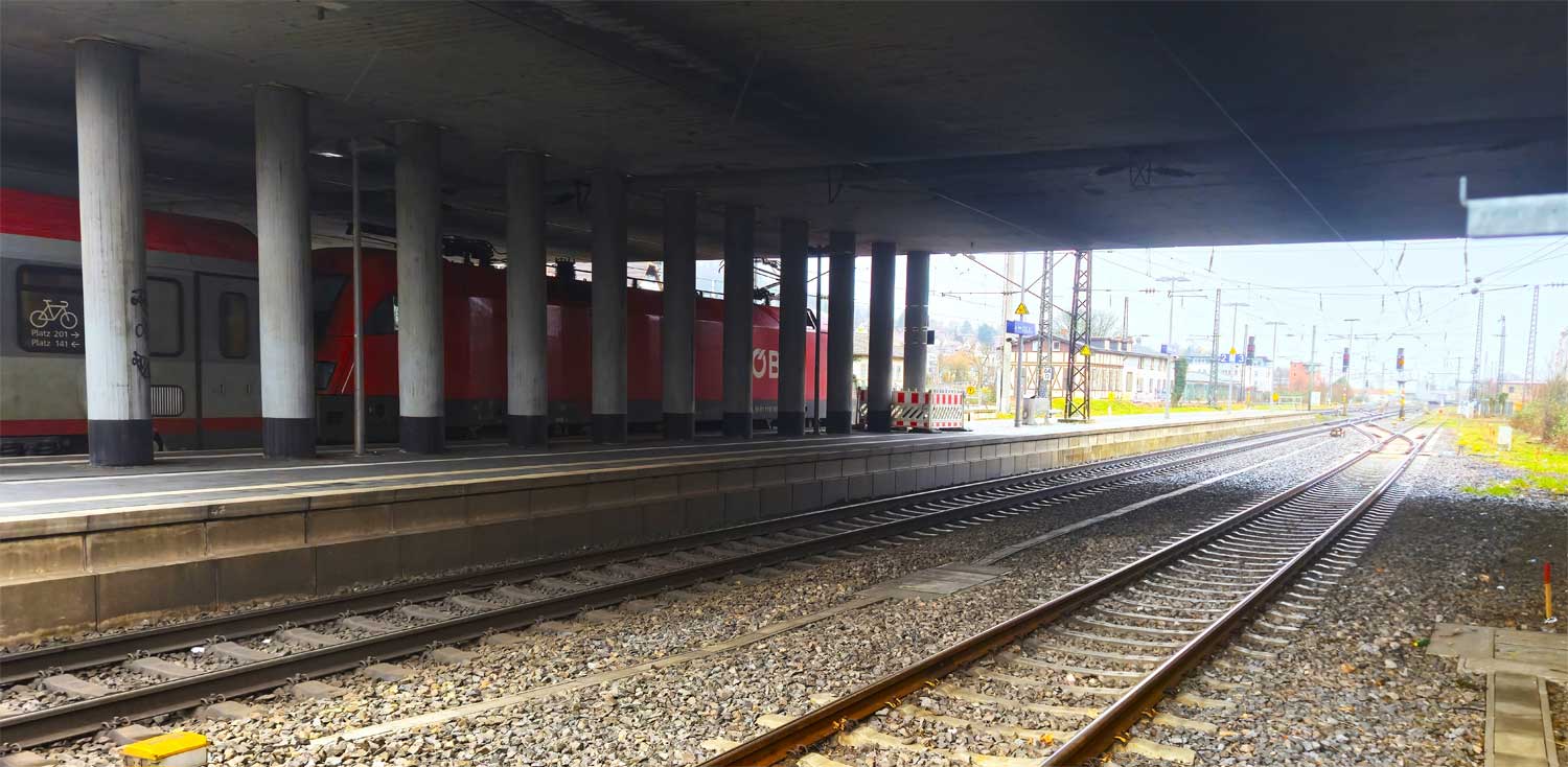 Darmstadt Hbf | 27,73 | km 33,38/33,96 der Strecke Mainz Hbf 0,0 - Darmstadt Hbf 33,38 (kommend von Mainz Hbf)/34,54 (kommend von Mainz Hbf Gegengleis)/33,96 (gehend nach Aschaffenburg) - Aschaffenburg Hbf 77,718 |