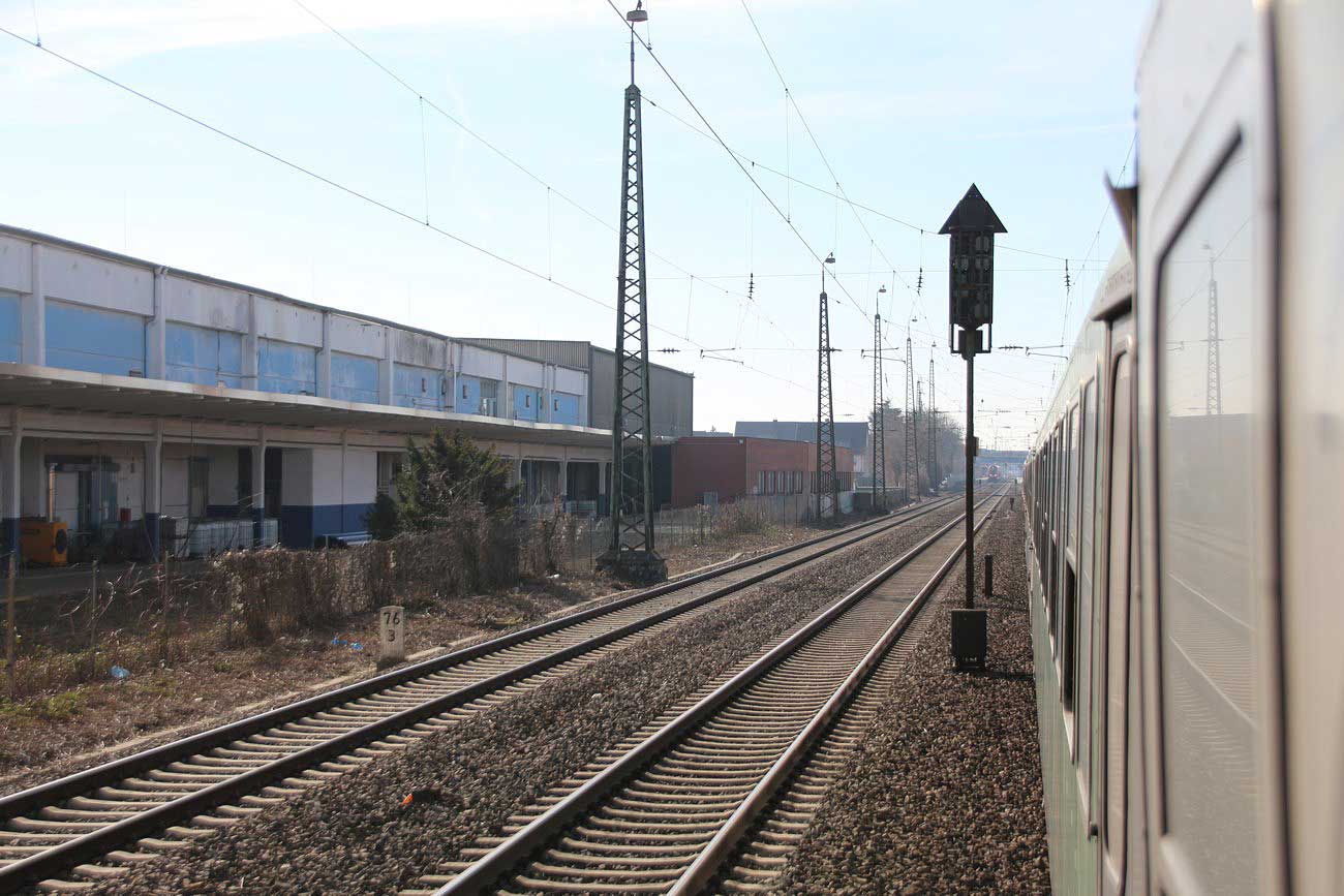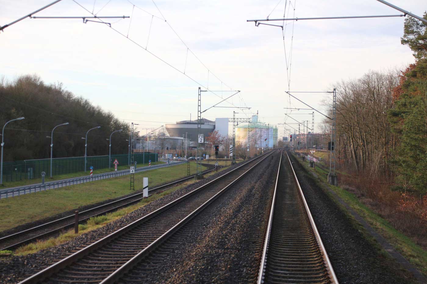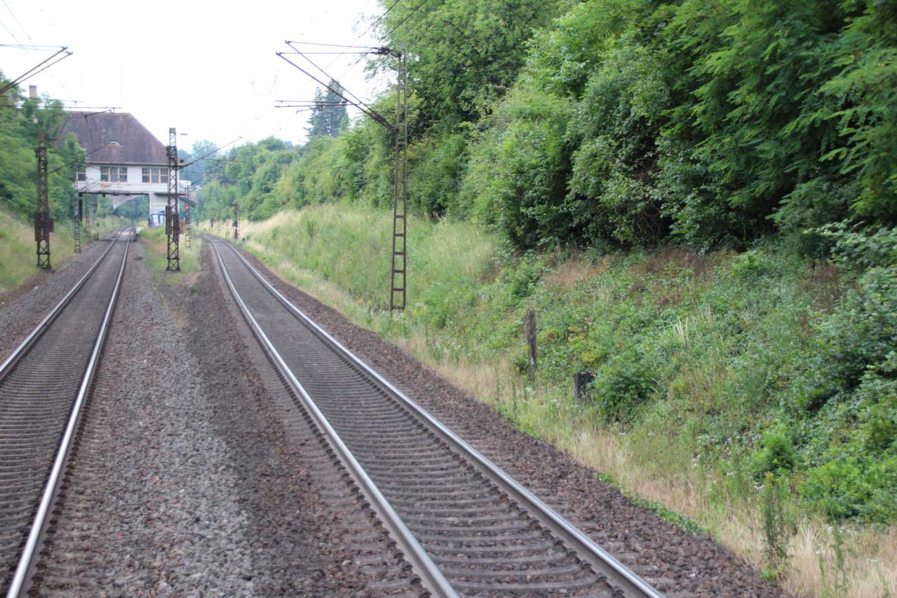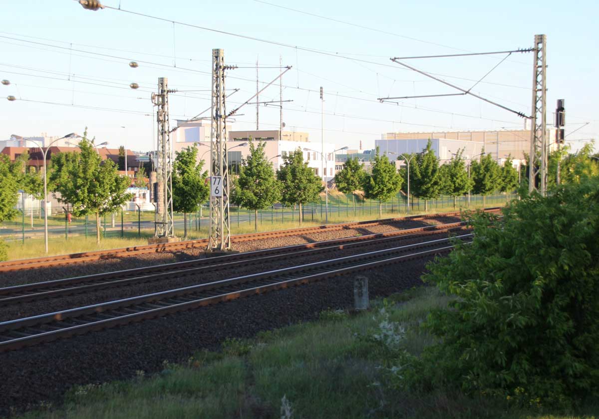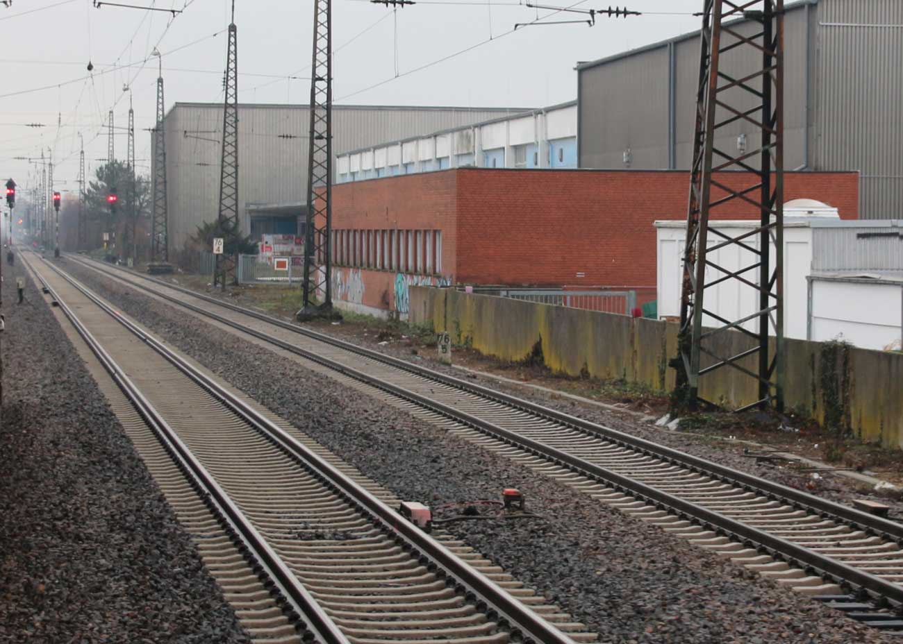 Ganz links die beiden Gleise der ehemaligen Strecke