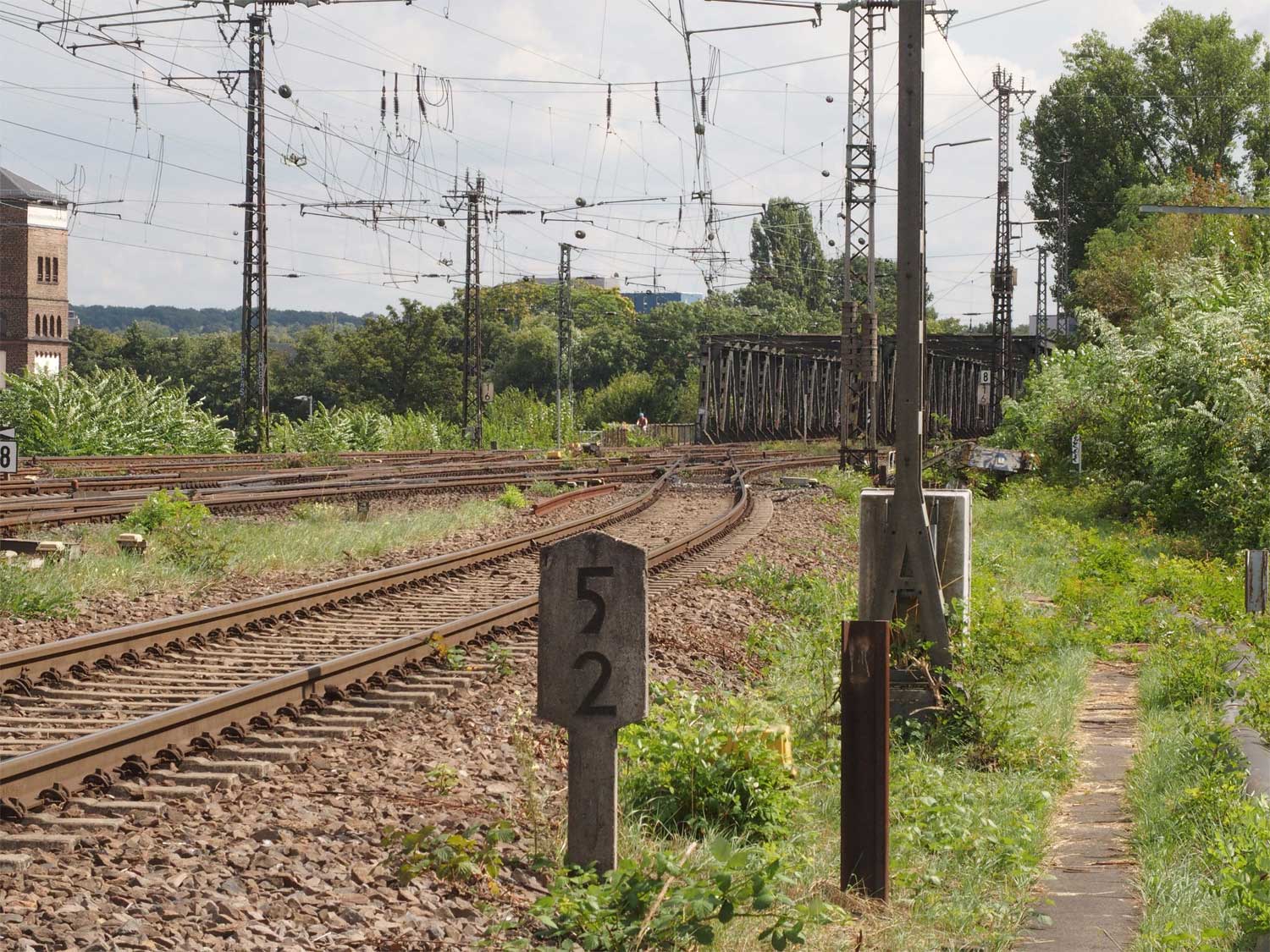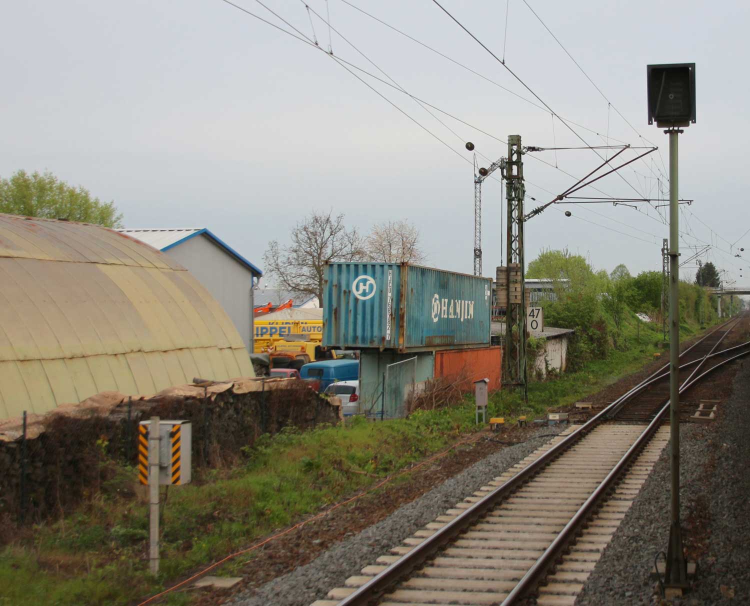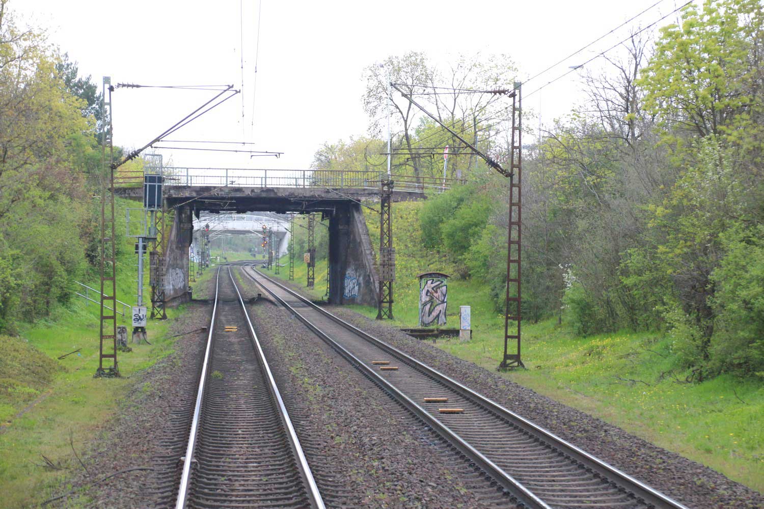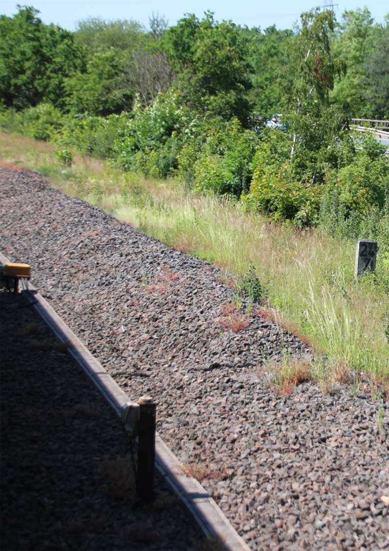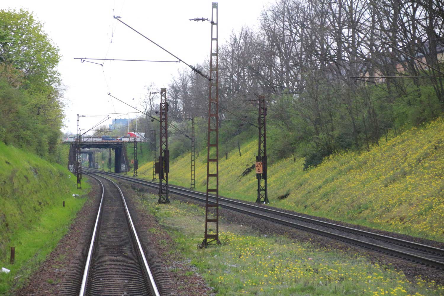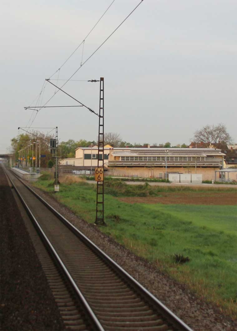 Ganz links die beiden Gleise der ehemaligen Strecke