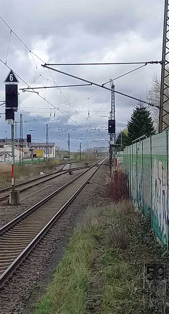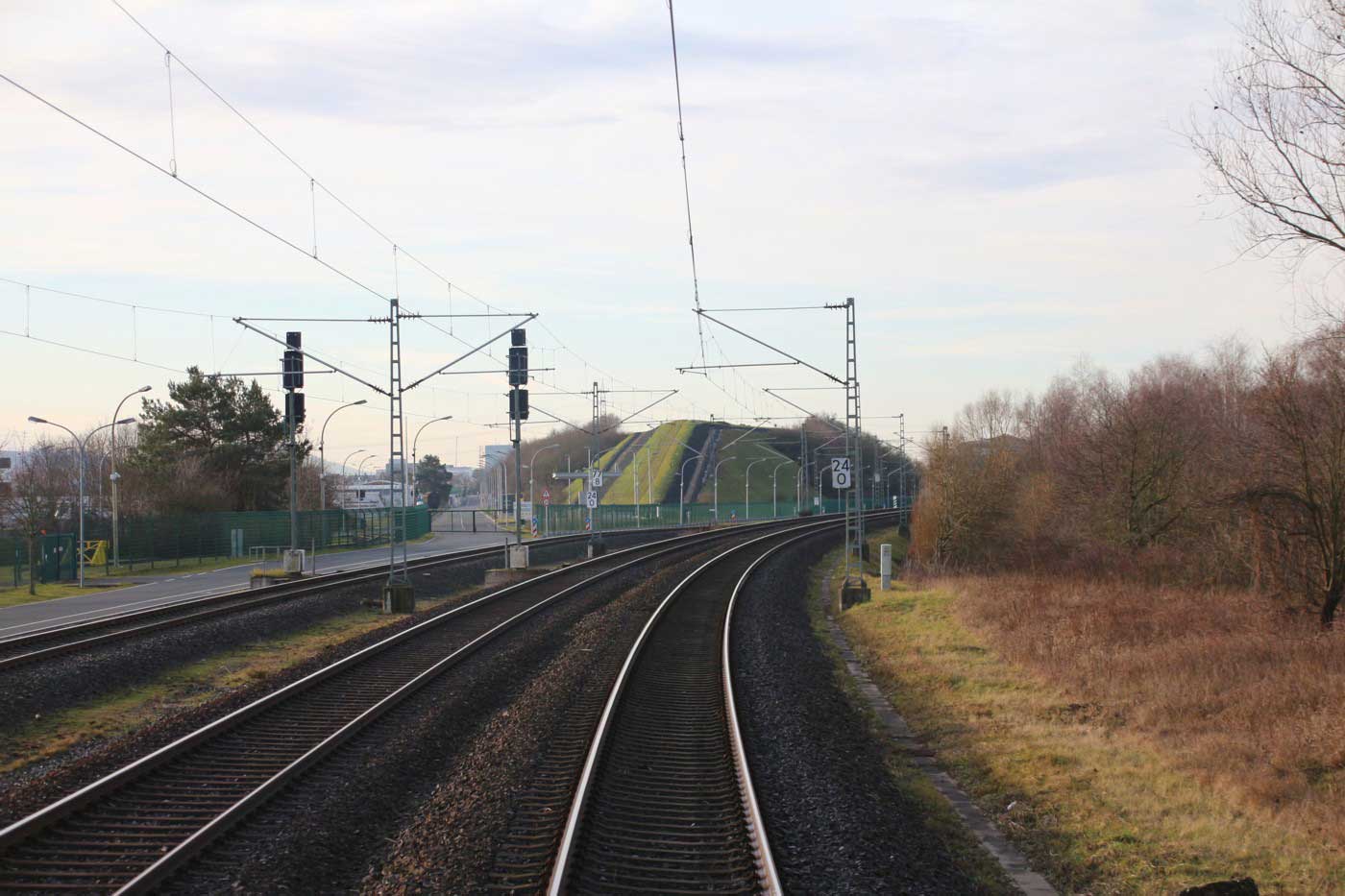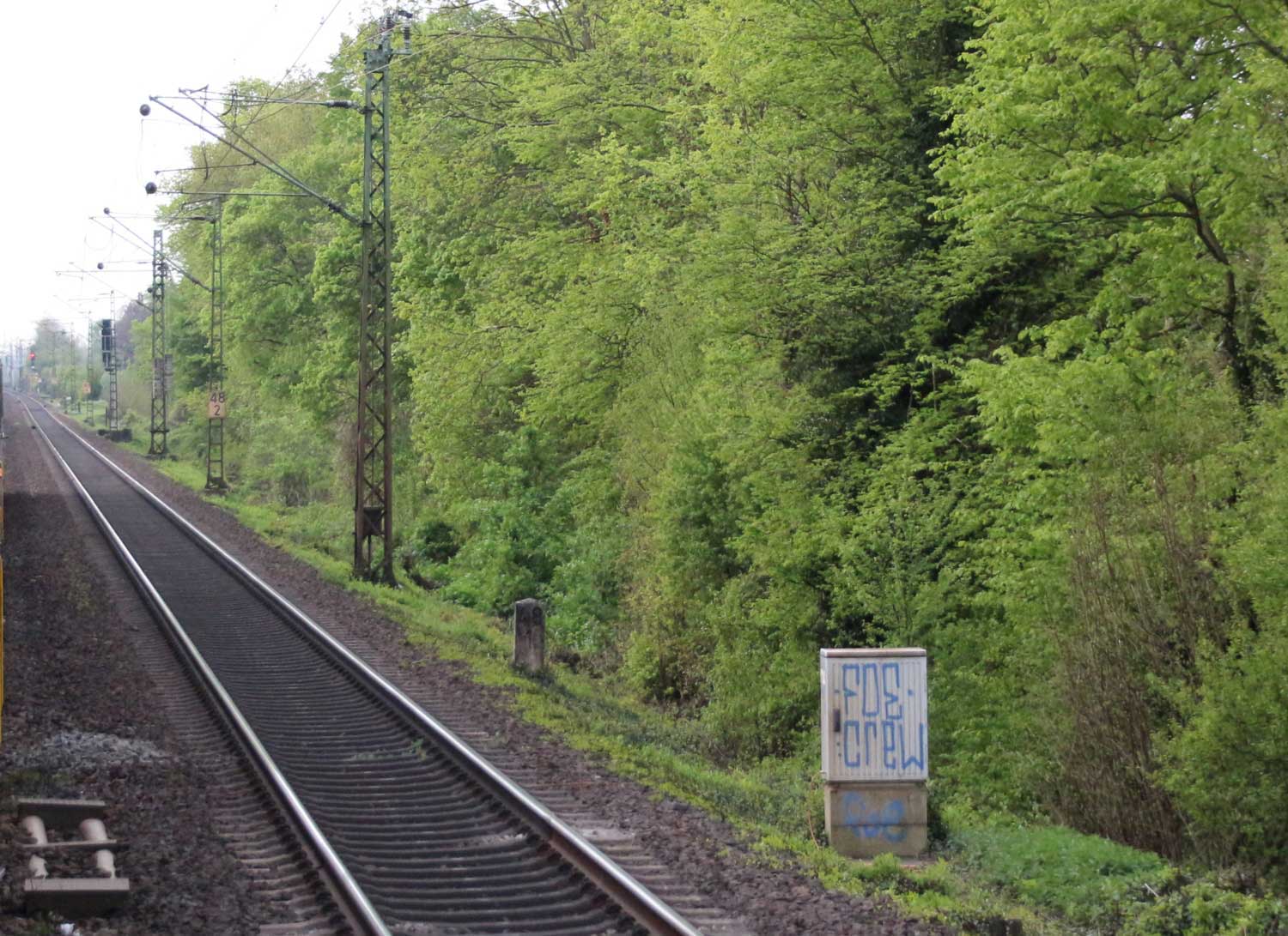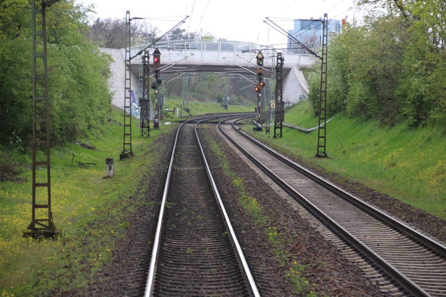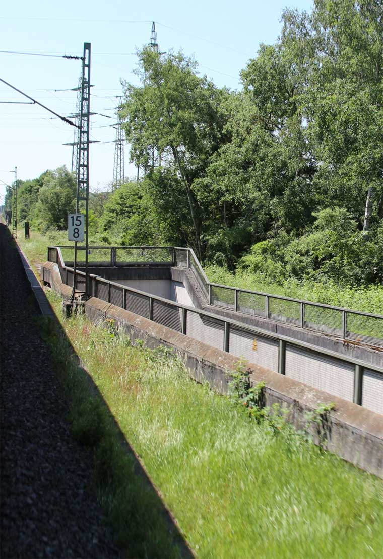 Ganz links die beiden Gleise der ehemaligen Strecke