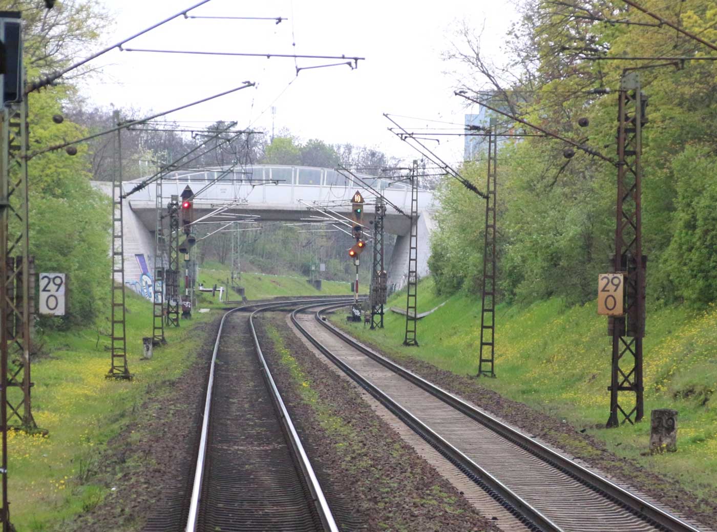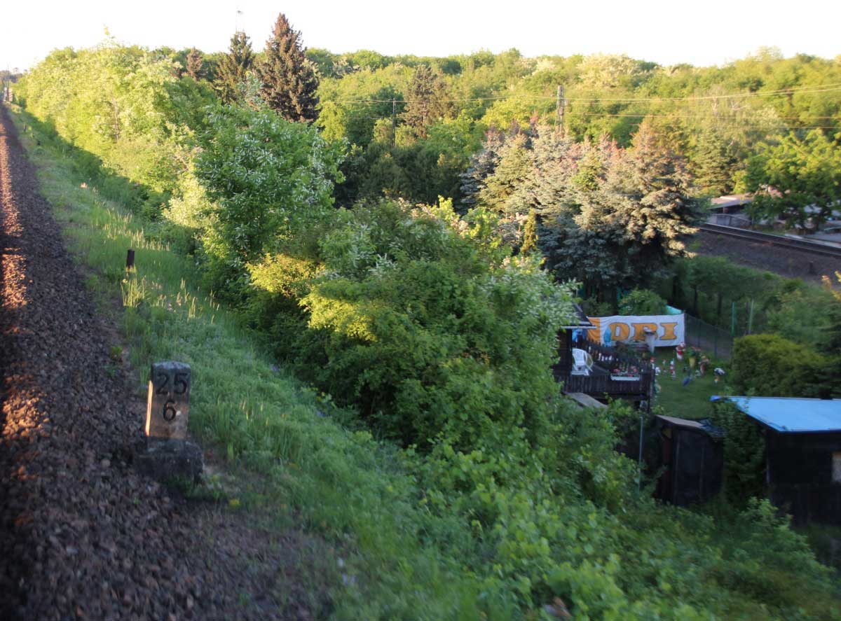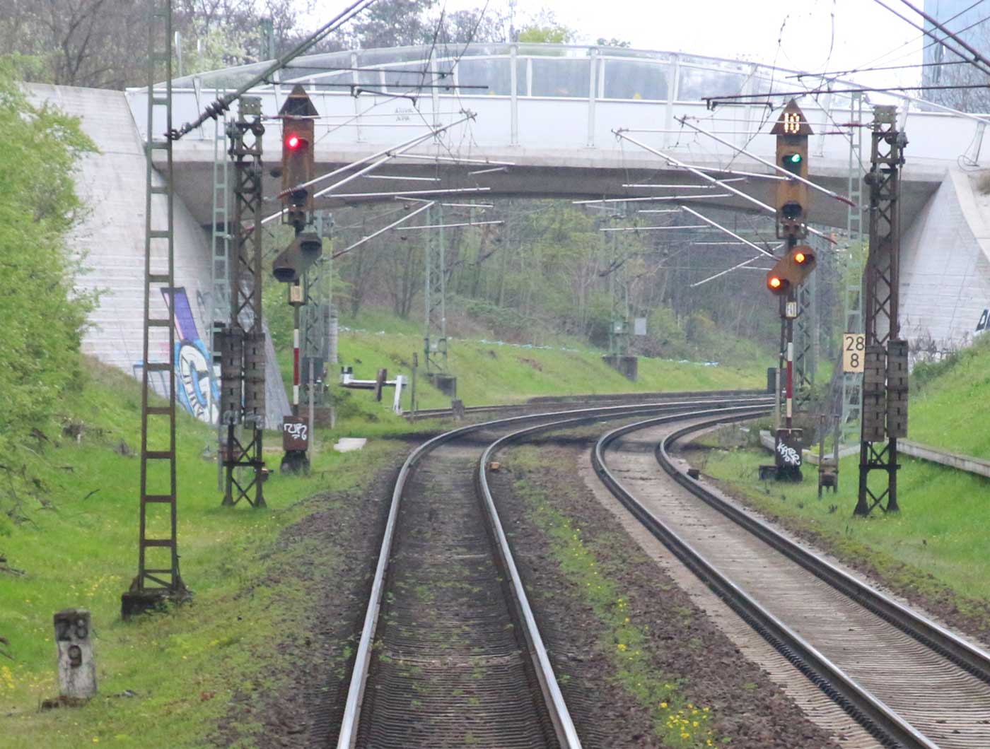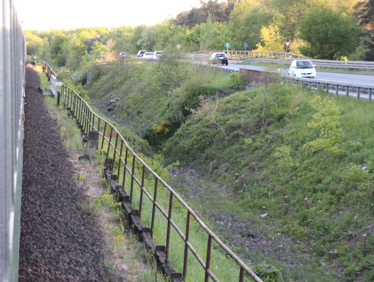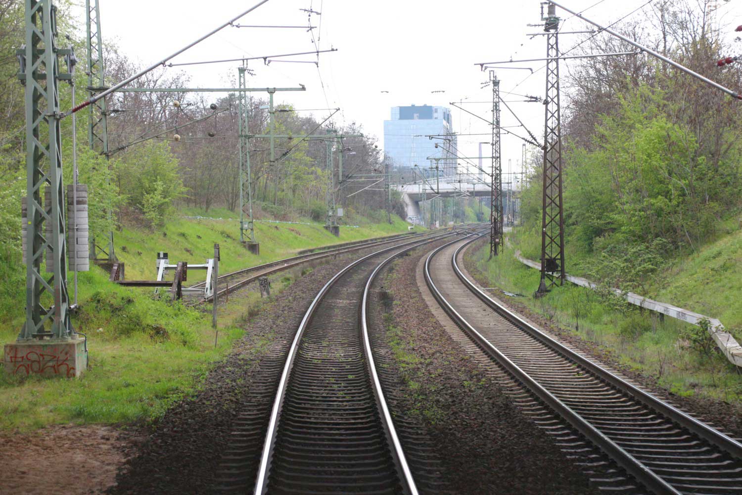 Ganz links die beiden Gleise der ehemaligen Strecke
