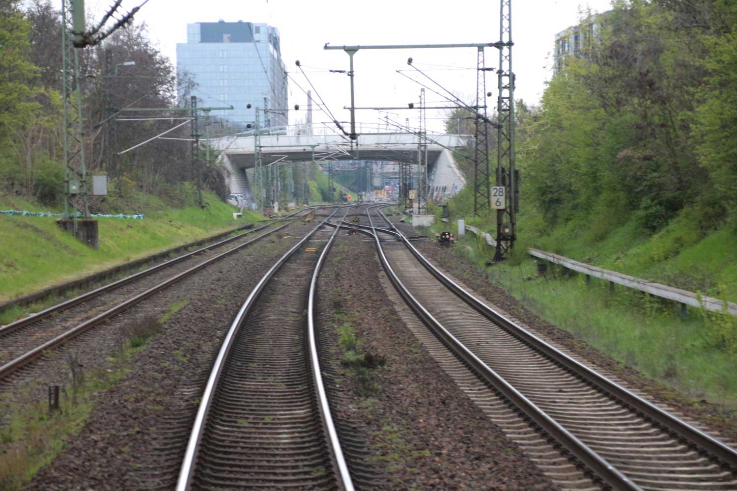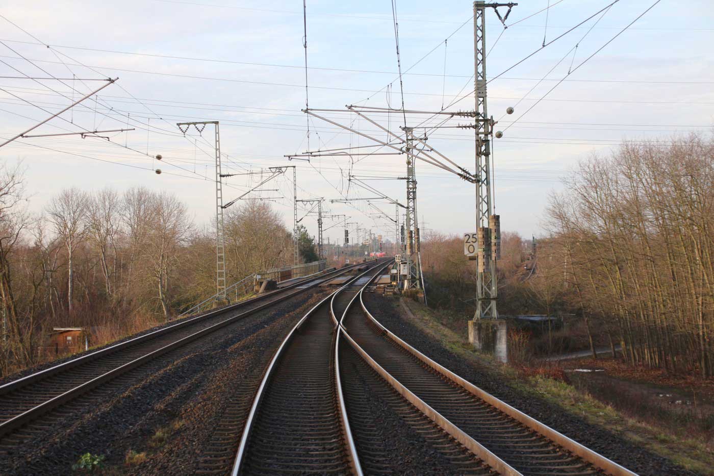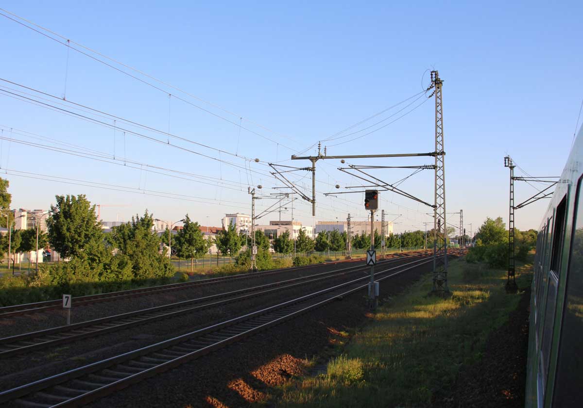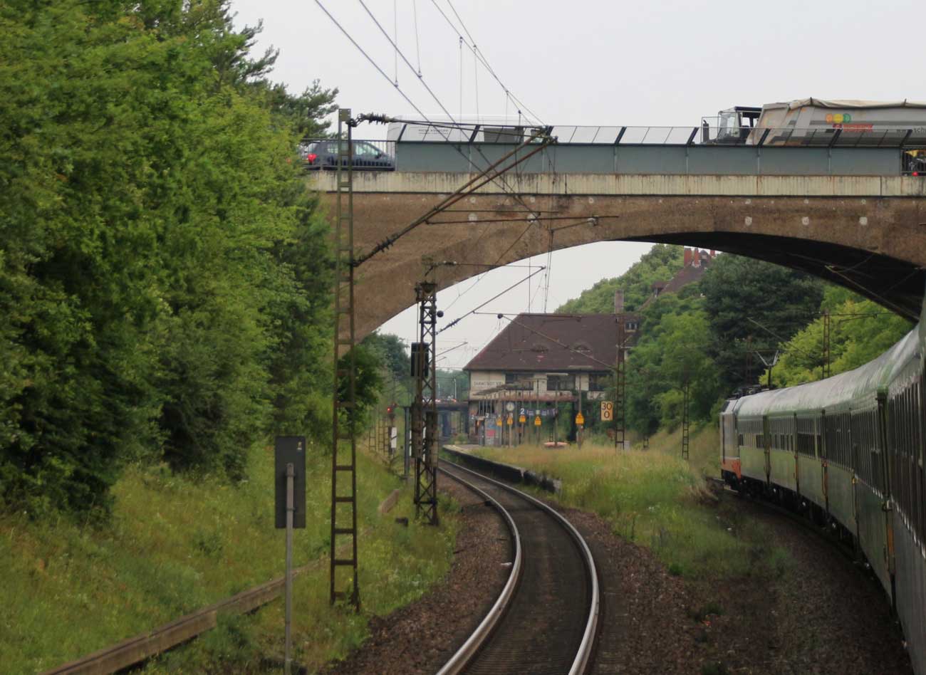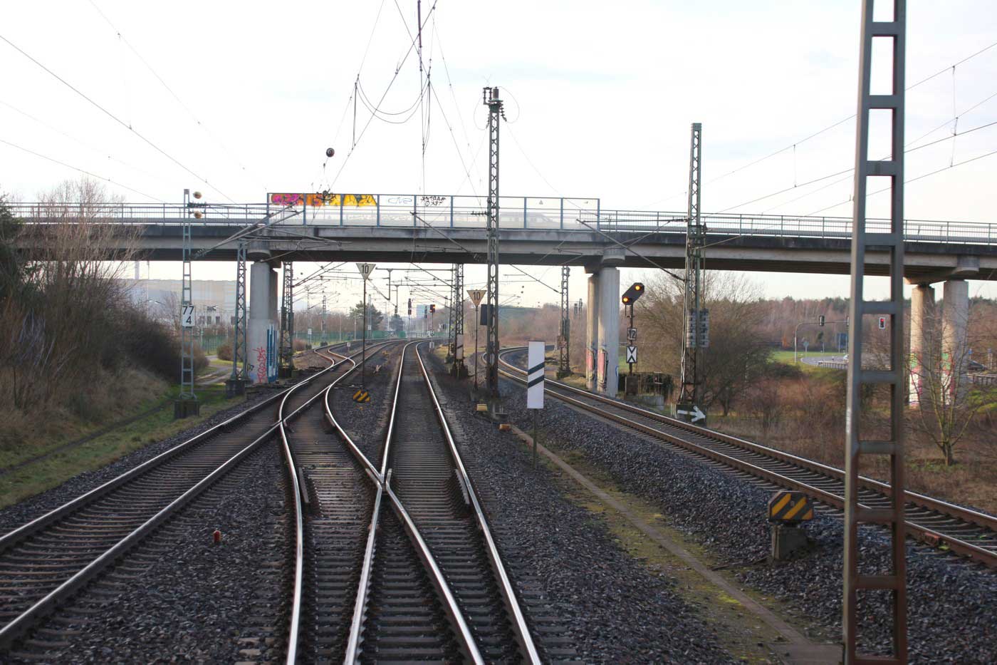 Ganz links die beiden Gleise der ehemaligen Strecke