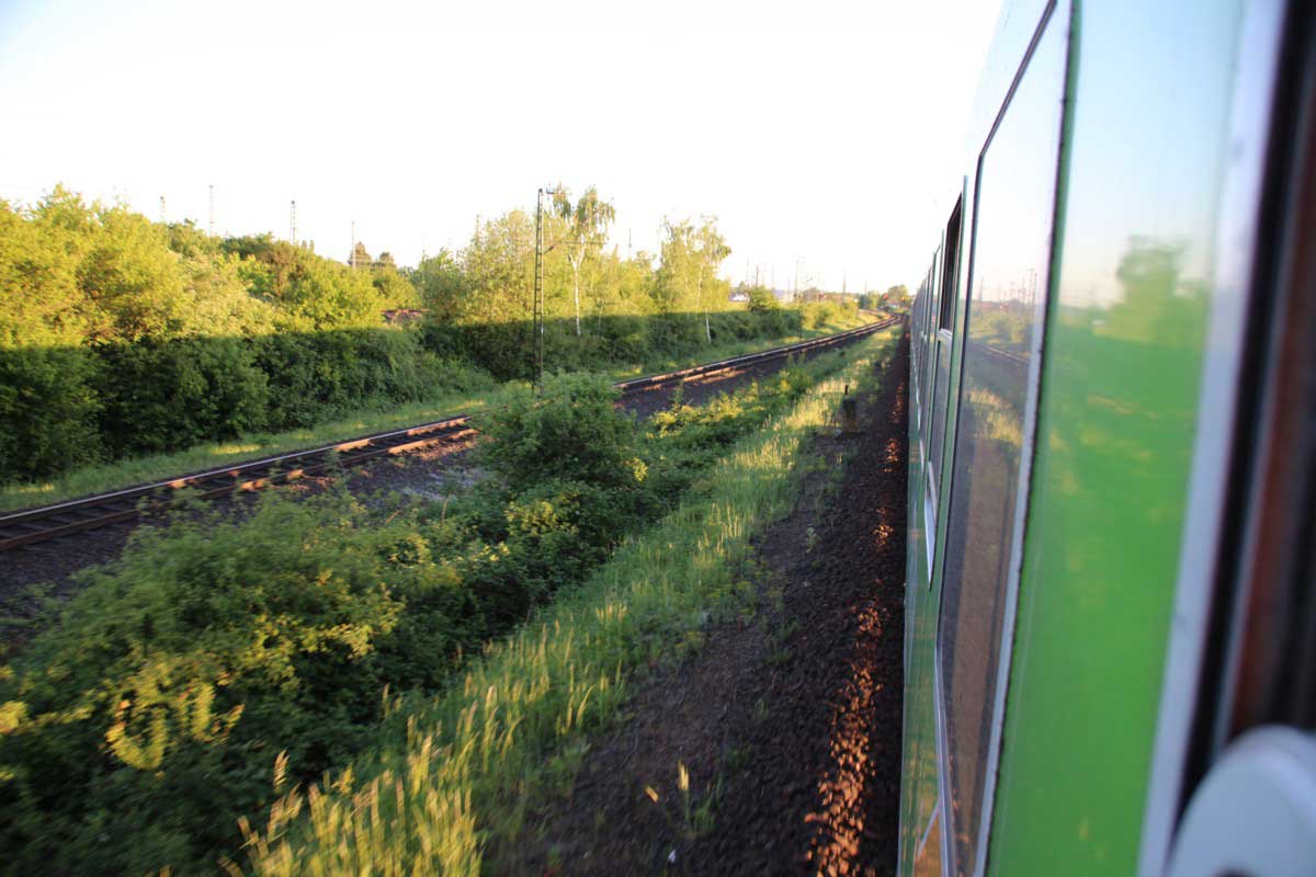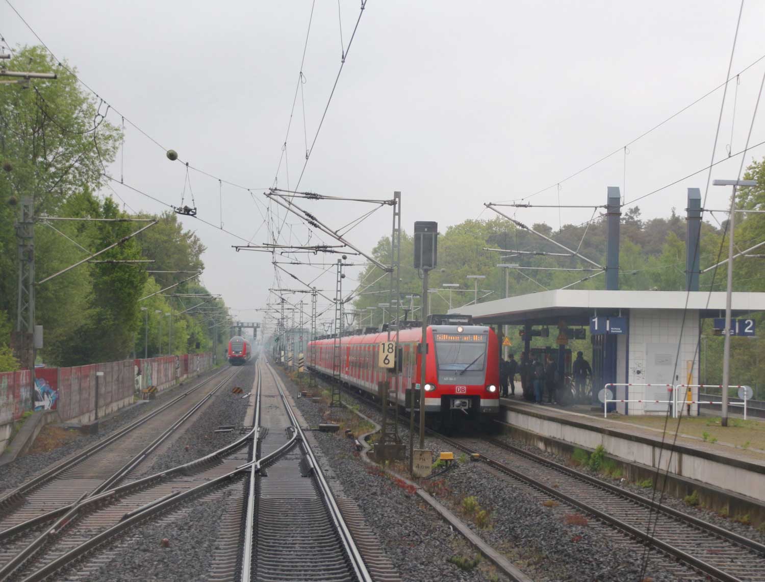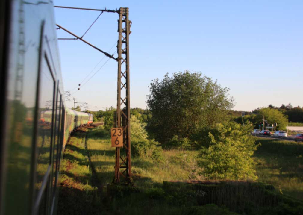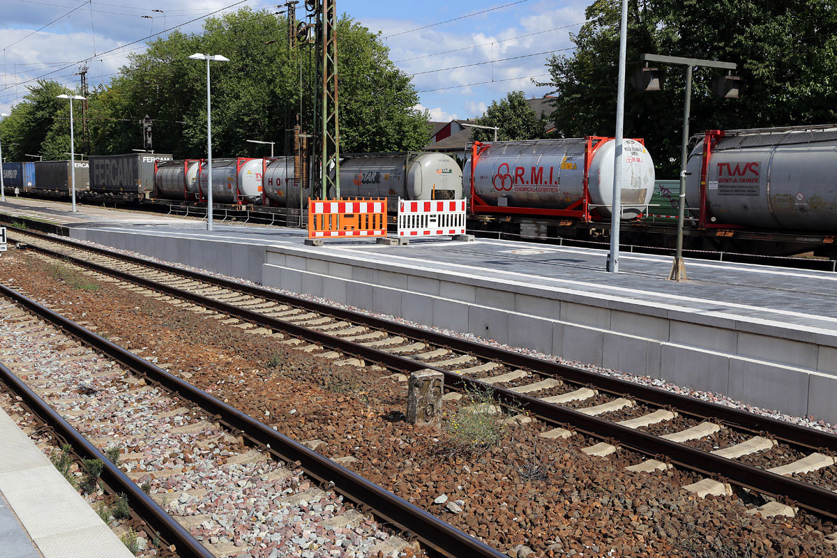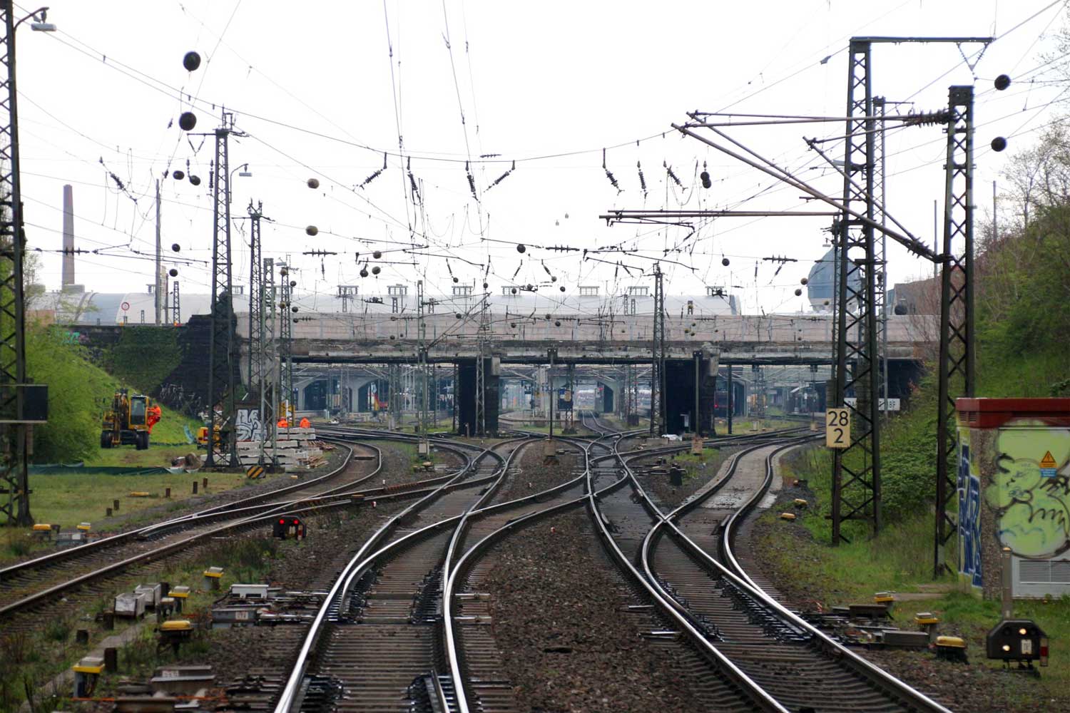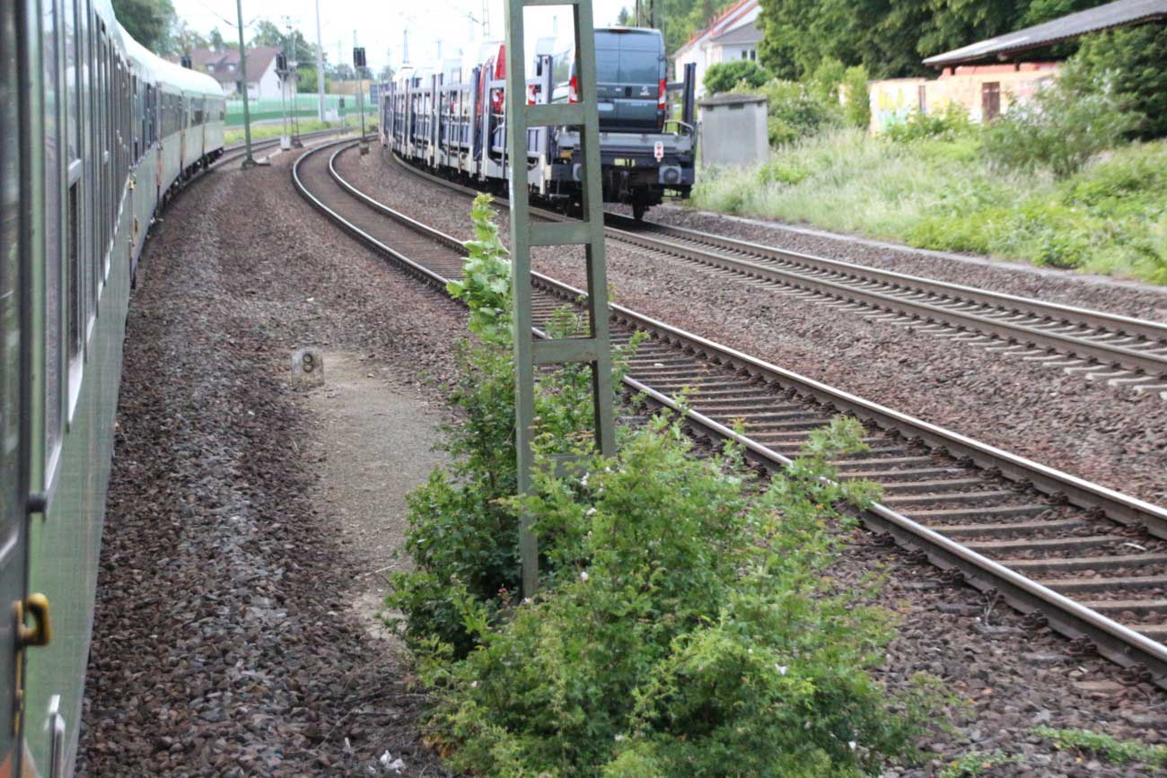 Ganz links die beiden Gleise der ehemaligen Strecke