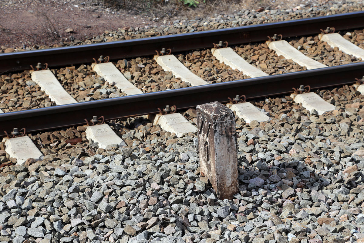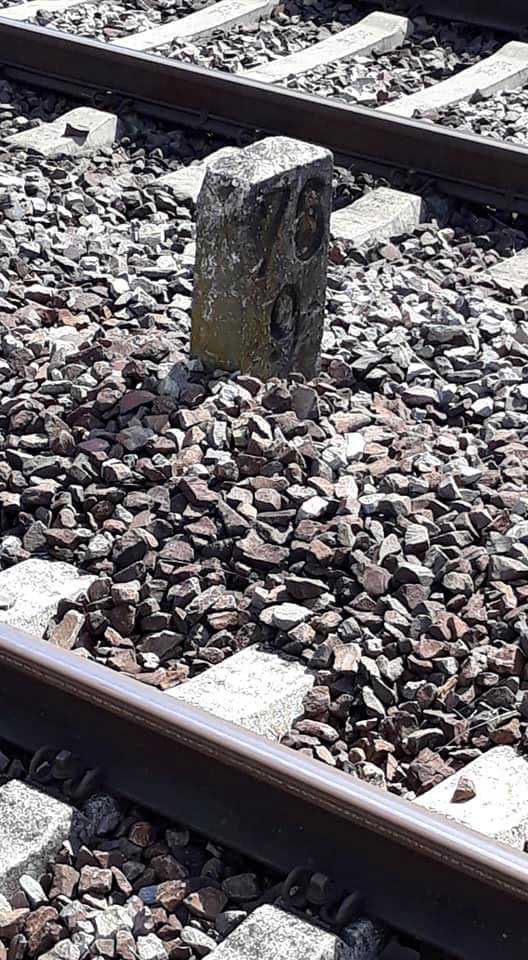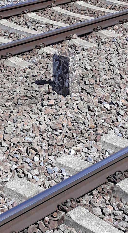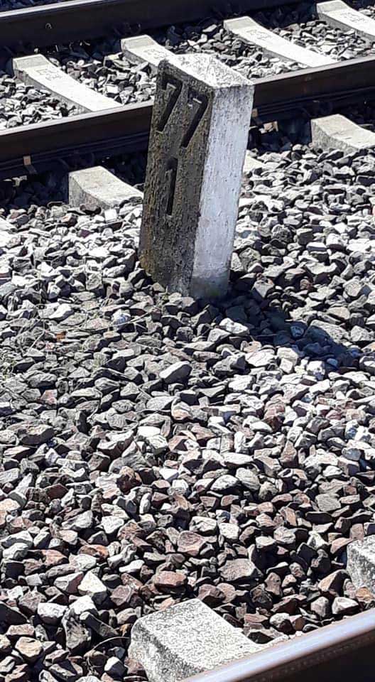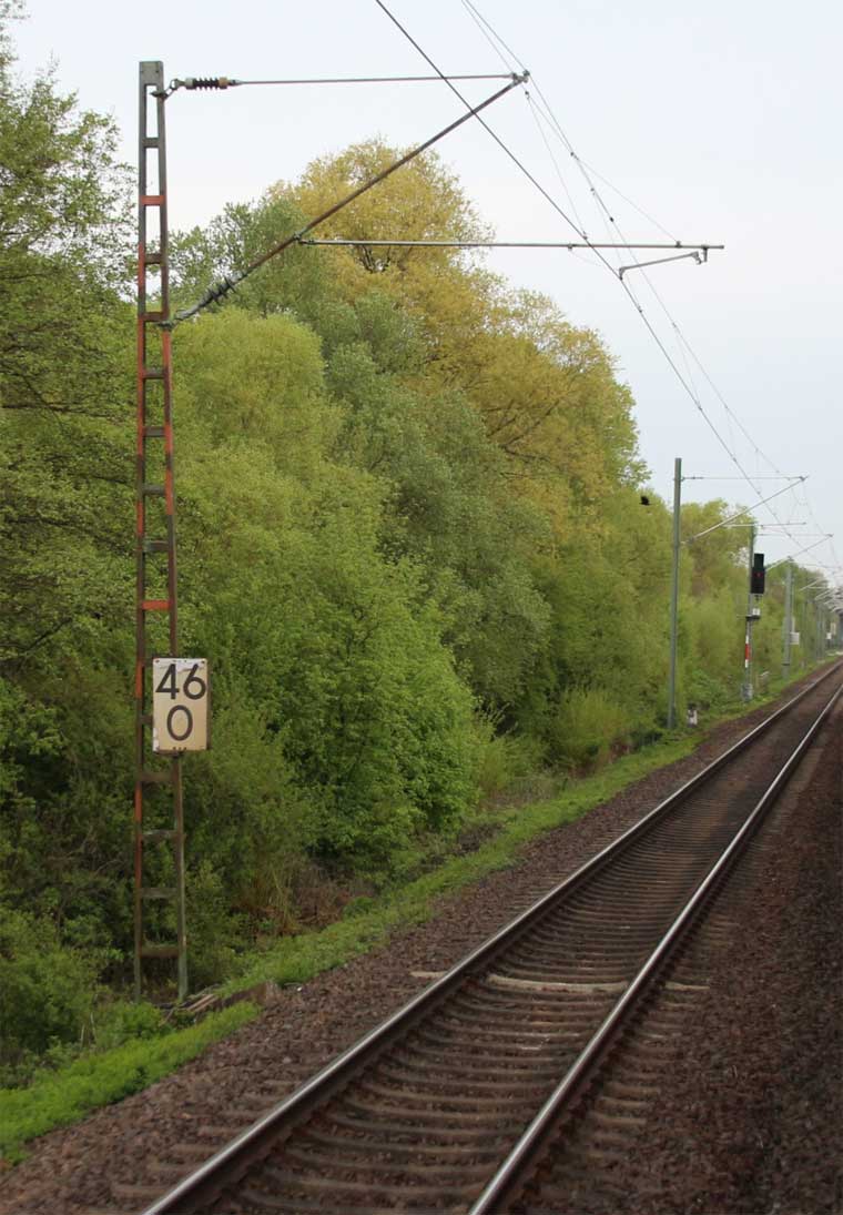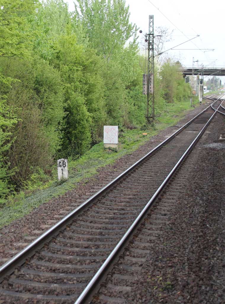Der Stein km 77,1 steht zwischen Gleis 3 Richtungsgleis (3601) und Gleis 4 (Richtungsgleis 4061)