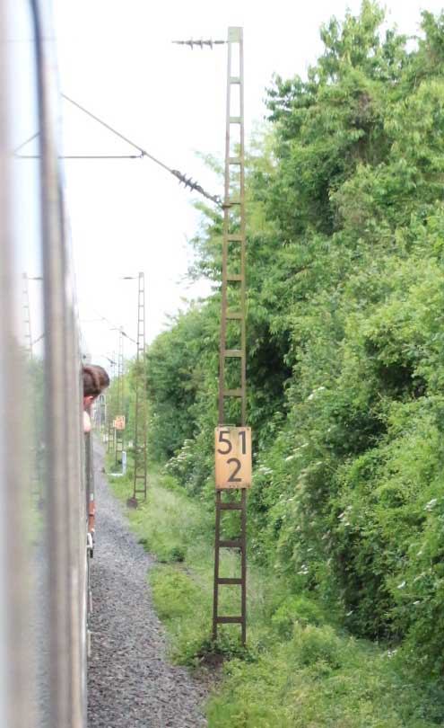 Angabe auf der Karte von 1988: km 51,000 + 683 m = km 51,237 m (entspricht einer Überlänge von 446 m) | ||