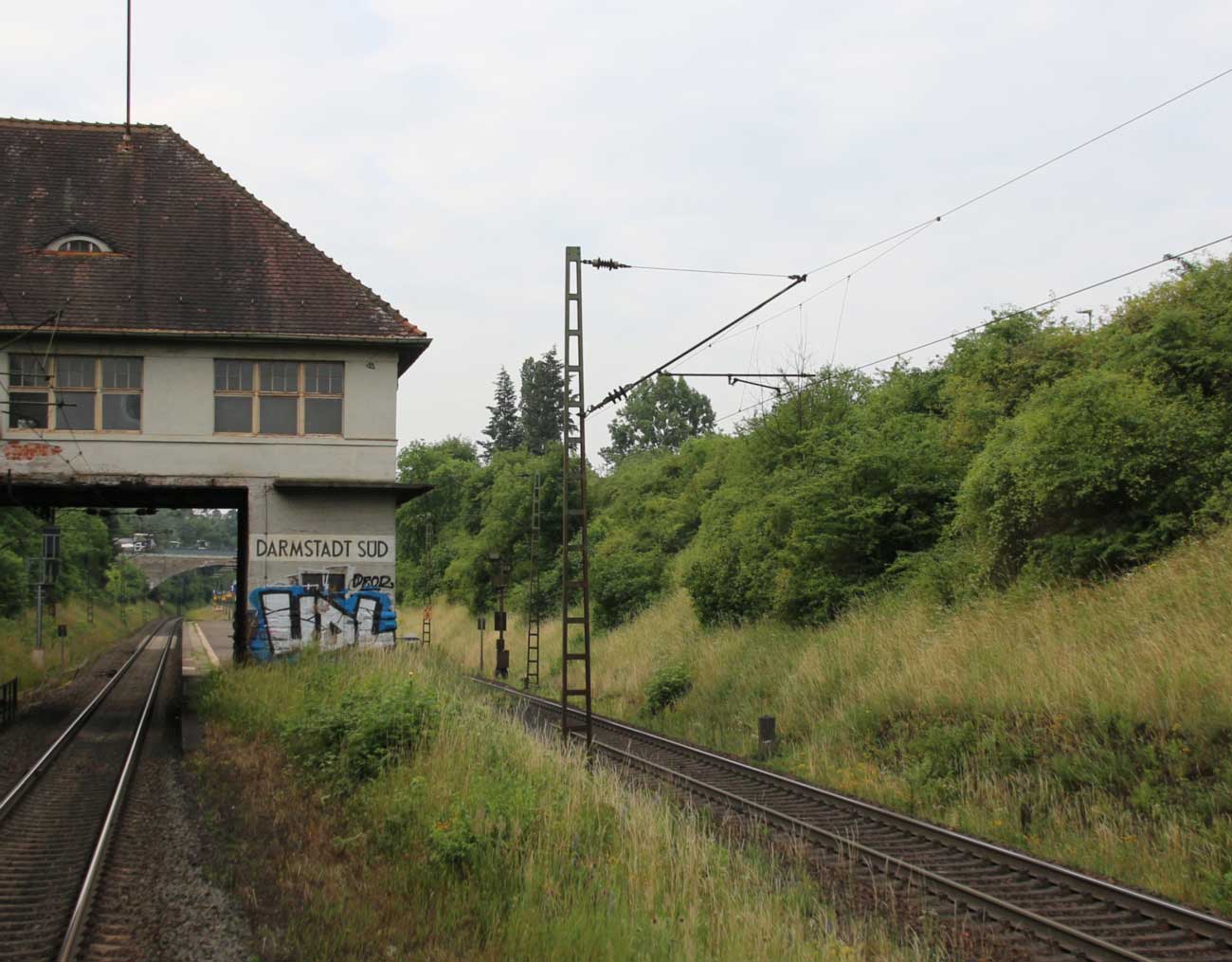 km 61,78 der Strecke (Mannheim Hbf 0,0) - Goddelau-Erfelden 45,71 (Abzw von Strecke 231) - Abzw Bergschneise 58,6 - Darmstadt Hbf 61,78 | ||