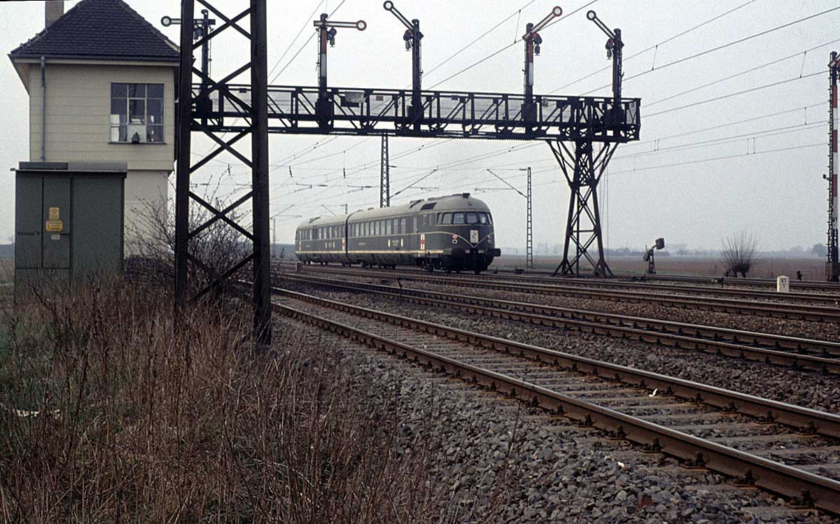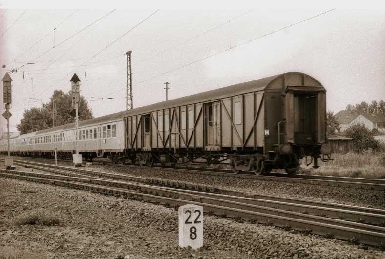 km 81,1 an der Bk Schlüssel (Mannheim Sand) - VT08 der US Army als Lazarettzug (Bw Kaiserslautern)