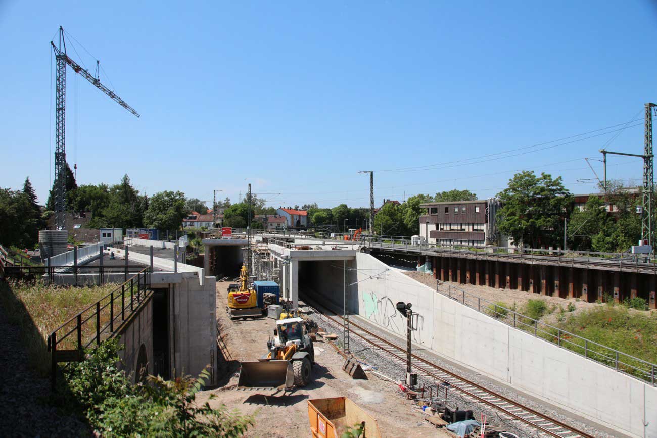 Unten die beiden Gleis (Gegenrichtungsgleis im Bau) des Streckenastes nach