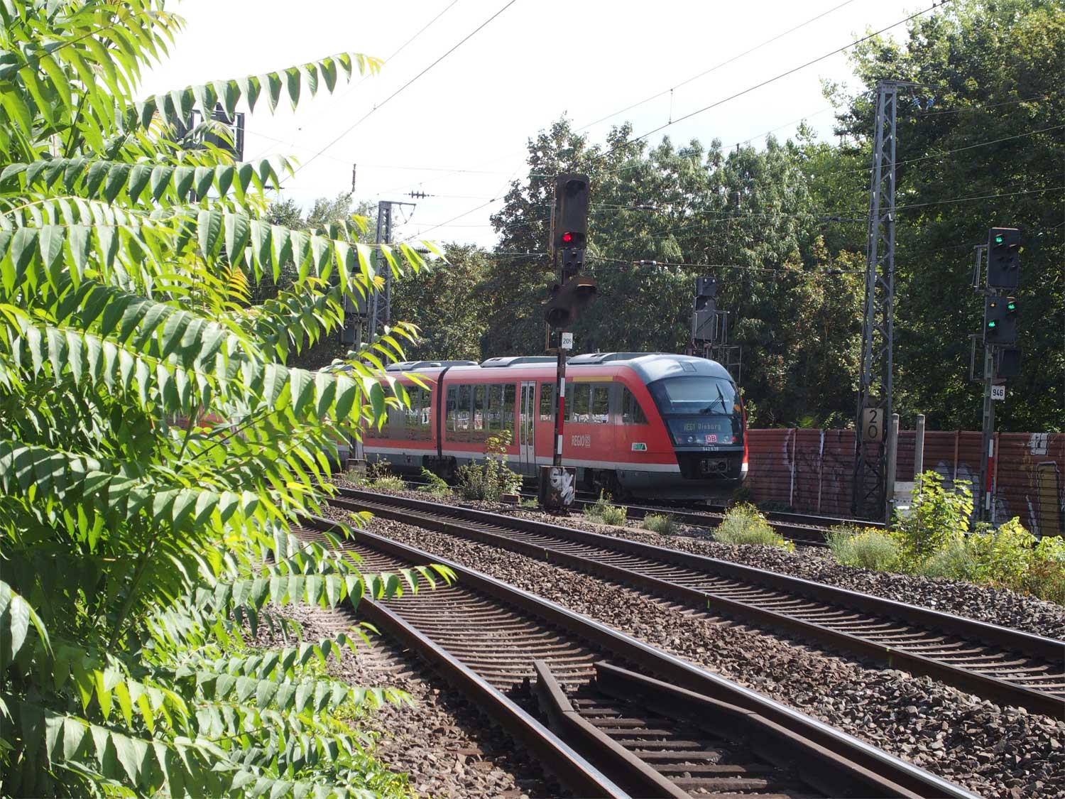 Der Triebwagen befindet sich auf Gleis 2 (Gegenrichtungsgleis 3601)