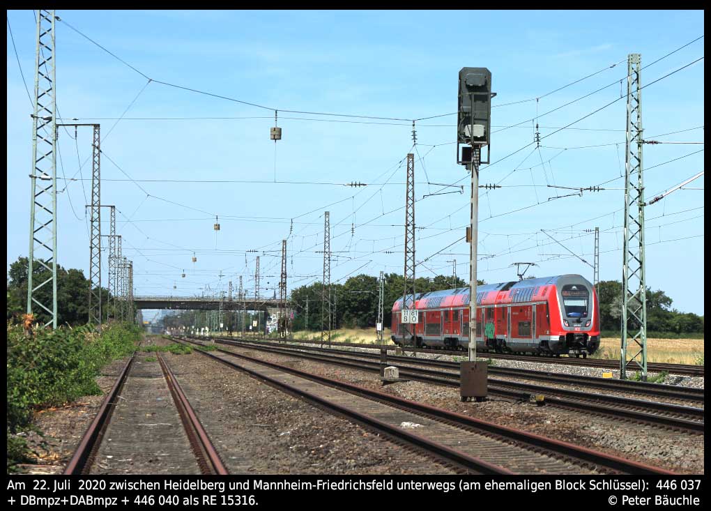 km 79,6 und 79,8 zwischen Mannheim-Friedrichsfeld und Bk Schlüssel (Mannheim Sand) - 146 006 mit RB 15357