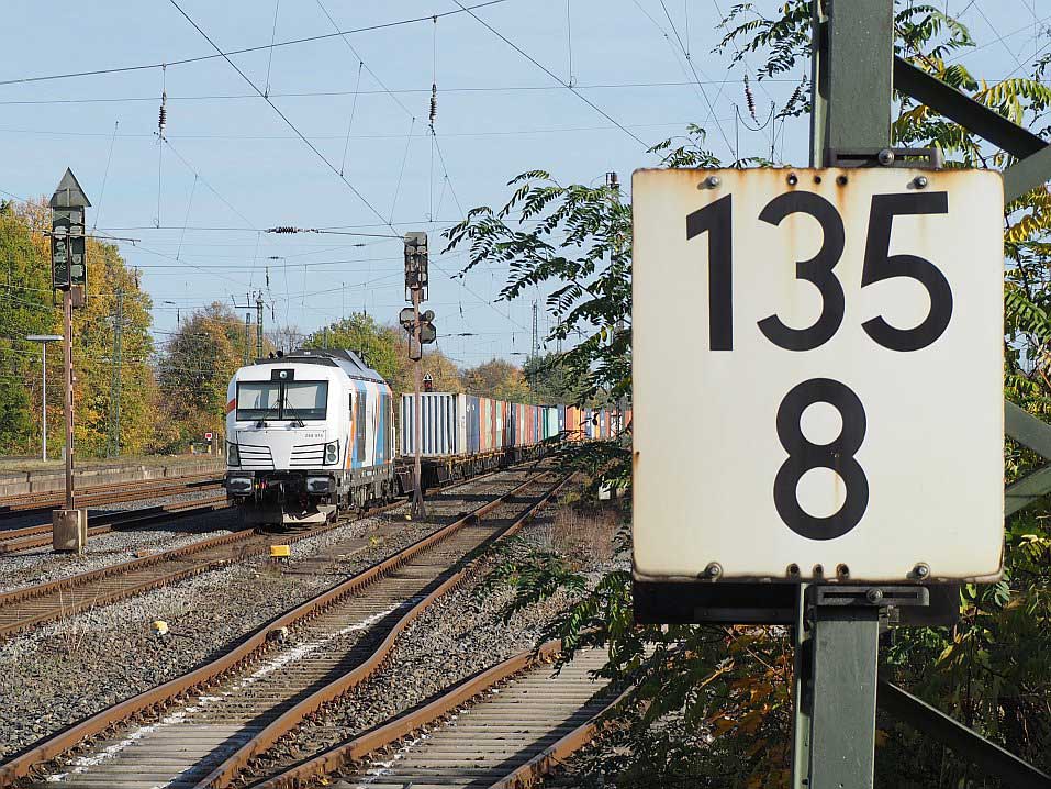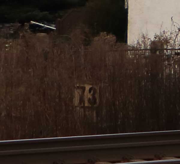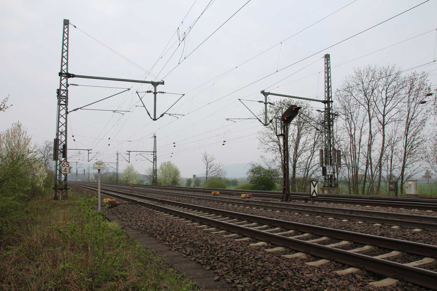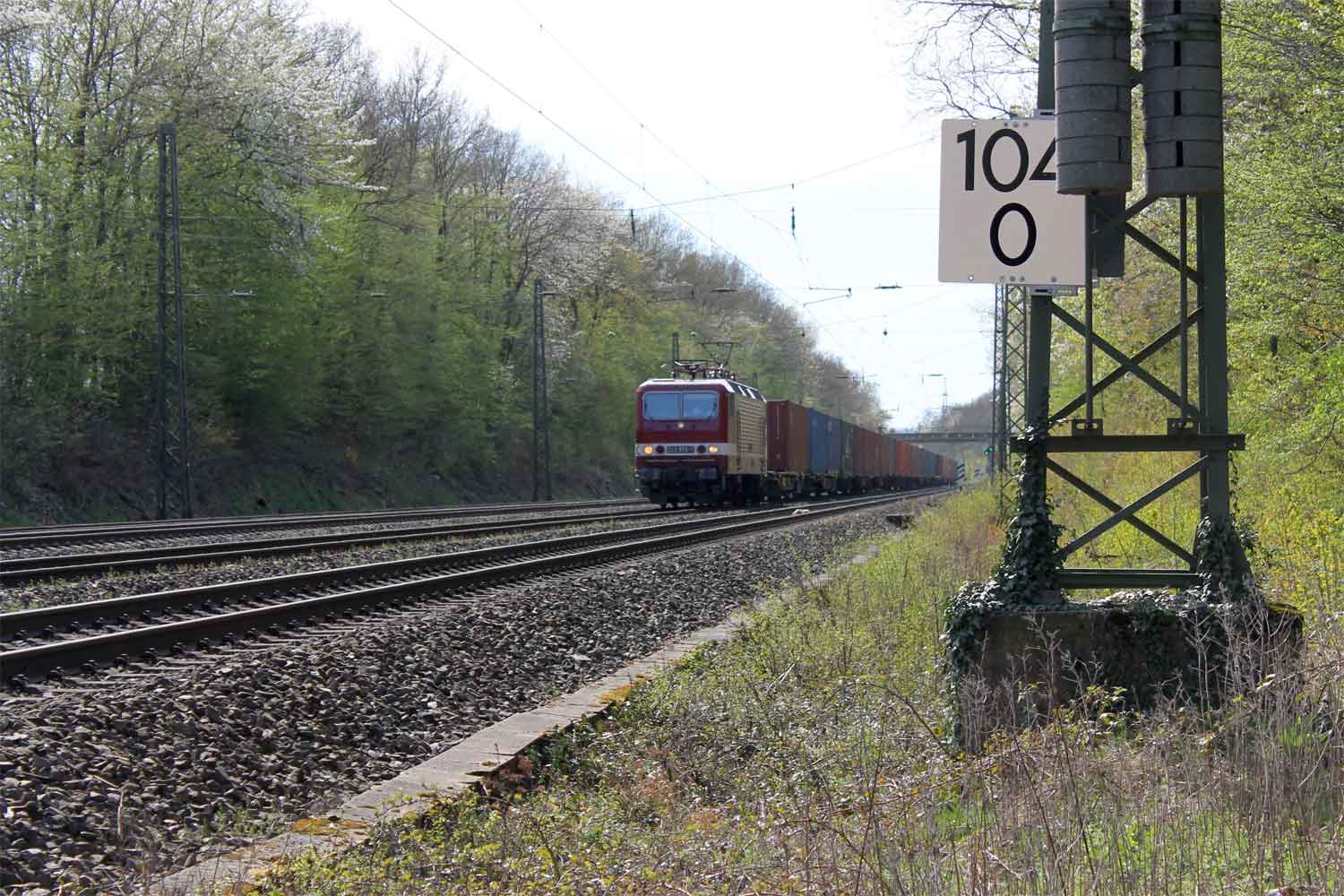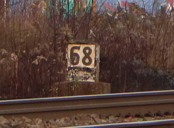 Rechts die Personenzugstrecke (1700) mit etwa gleicher Kilometrierung