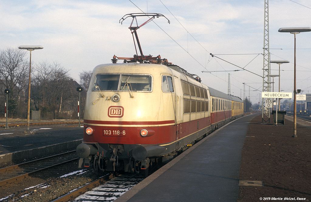 km 155,0 in Neubeckum Pbf - 103 118 mit Meßzug