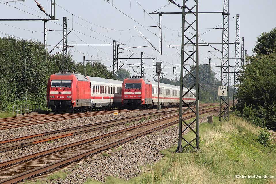 km 139,2 (Tafel und Stein) zwischen Rheda-Wiedenbrück und Oelde - 101 096 und 101 044