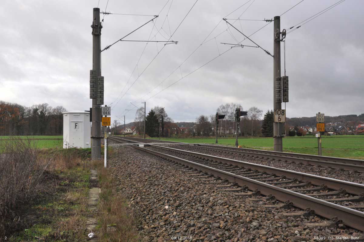 km 85,30 der Strecke (Hannover Hbf 0,0) - Wunstorf 21,40 - Minden (Westf) 64,37 - Löhne (Westf) 85,30 - Bielefeld Hbf 109,45 - Hamm (Westf) Pbf 176,39 | ||