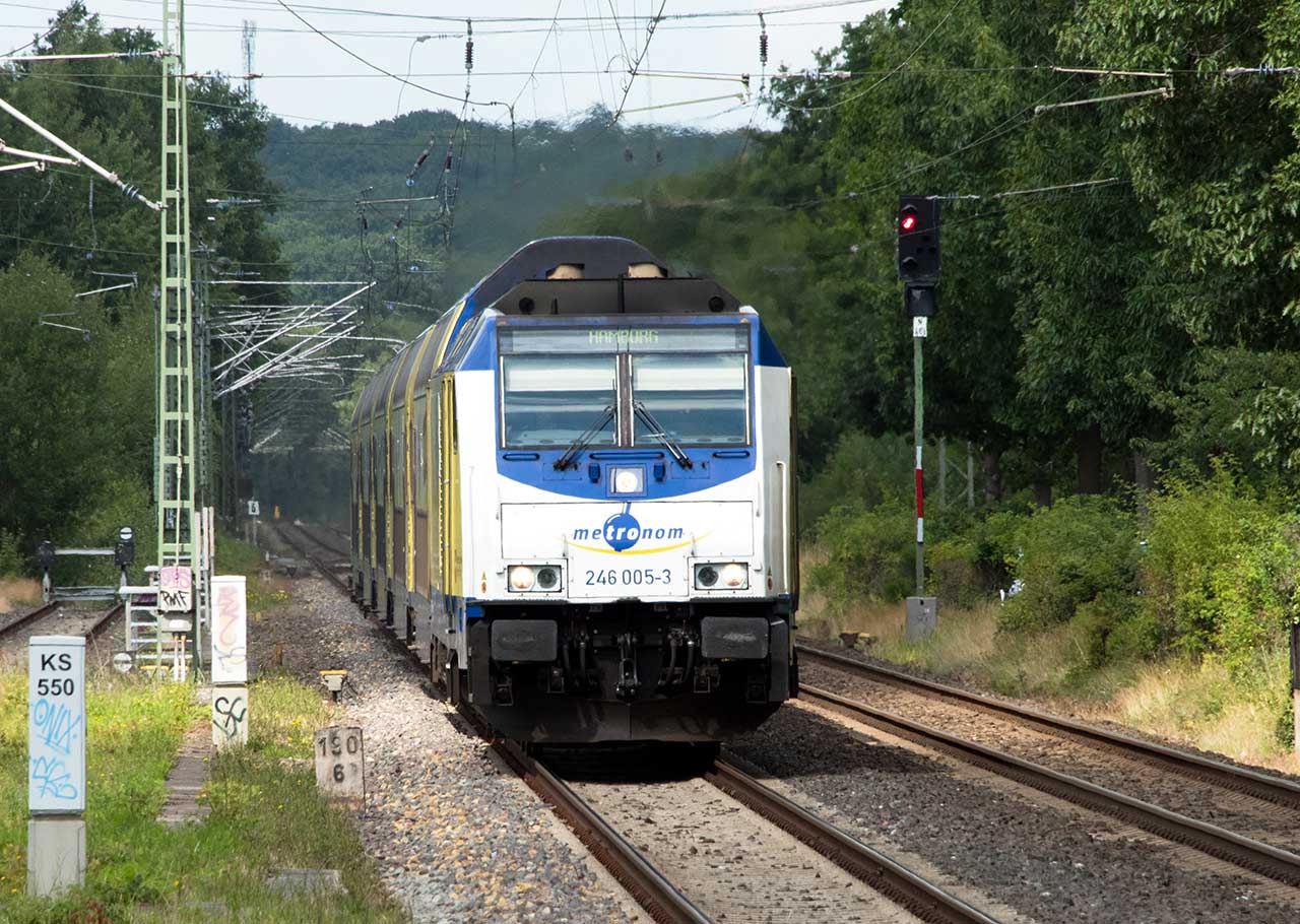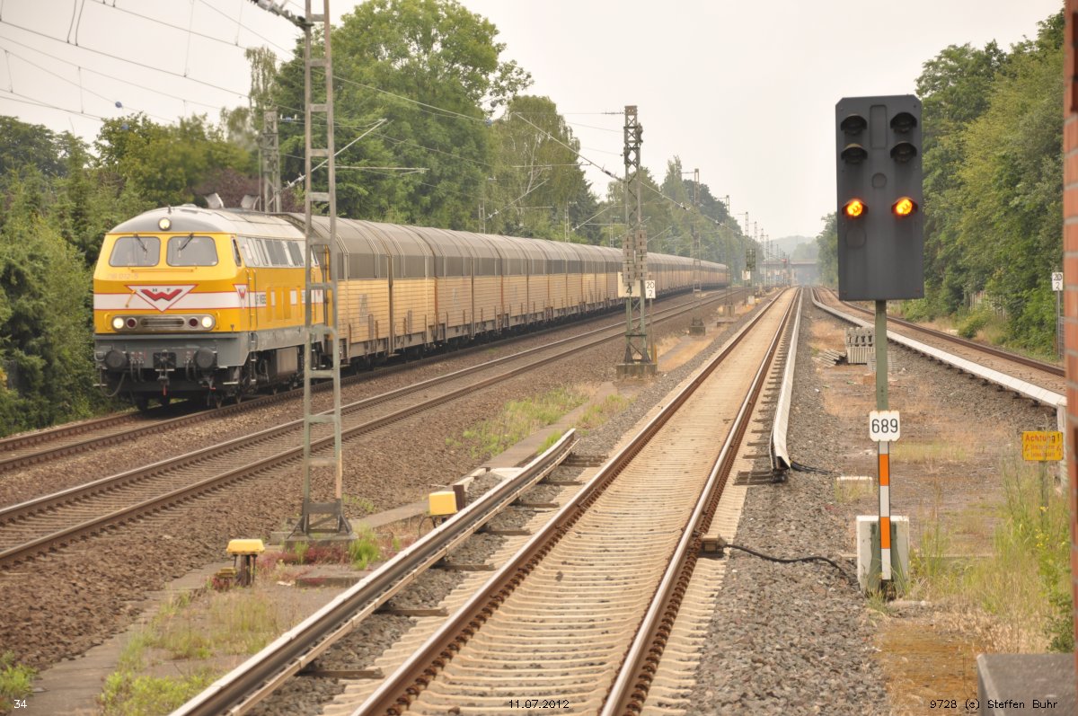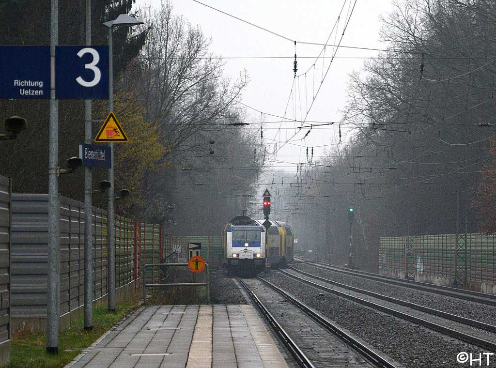 Der Zug selber befindet sich auf der Strecke Wunstorf - Lehrte Nord (Güterumgehungsbahn, 1750)