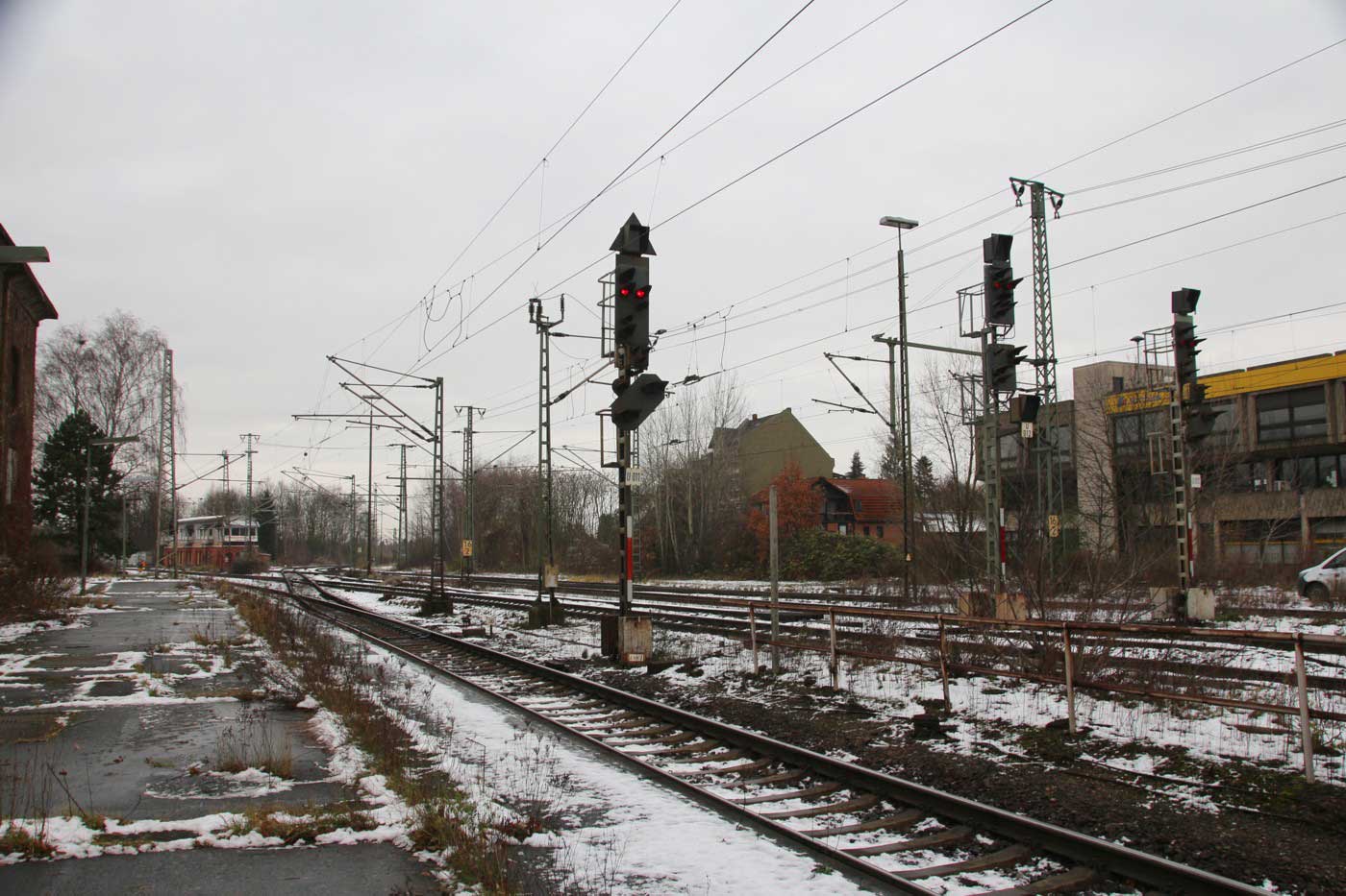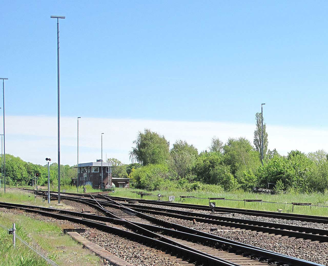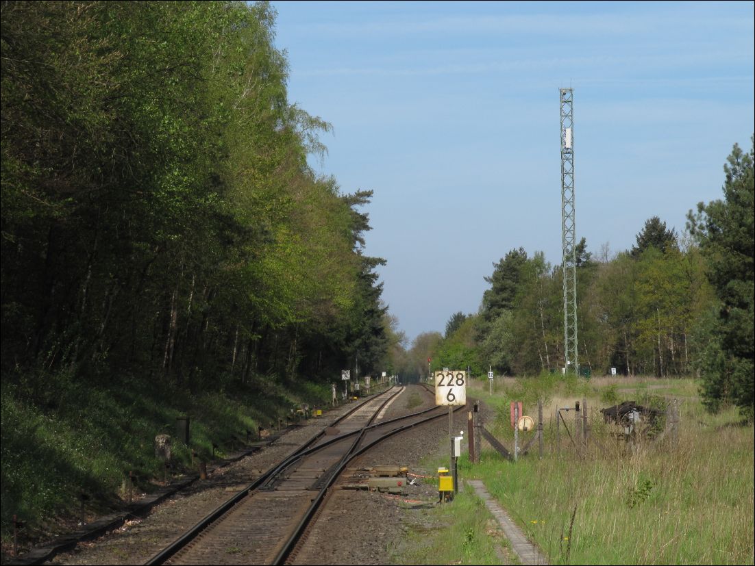 Links ist noch zu sehen km 1,6 der Strecke Braunschweig Rbf - Abzw Lünischteich