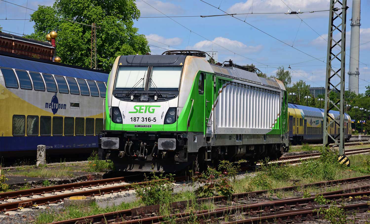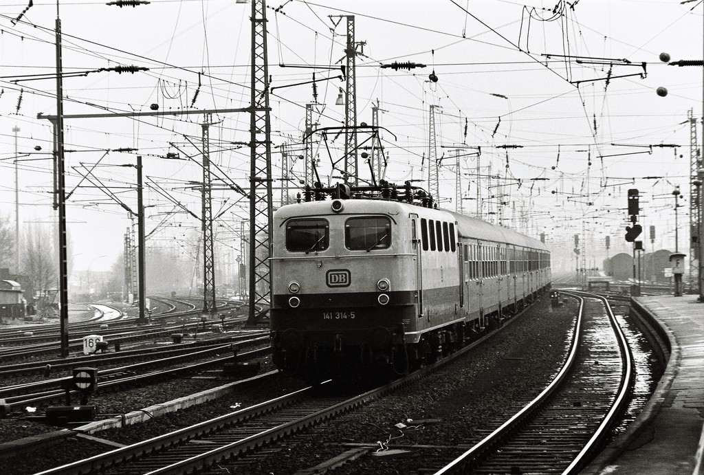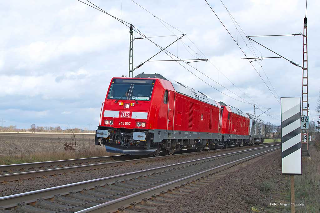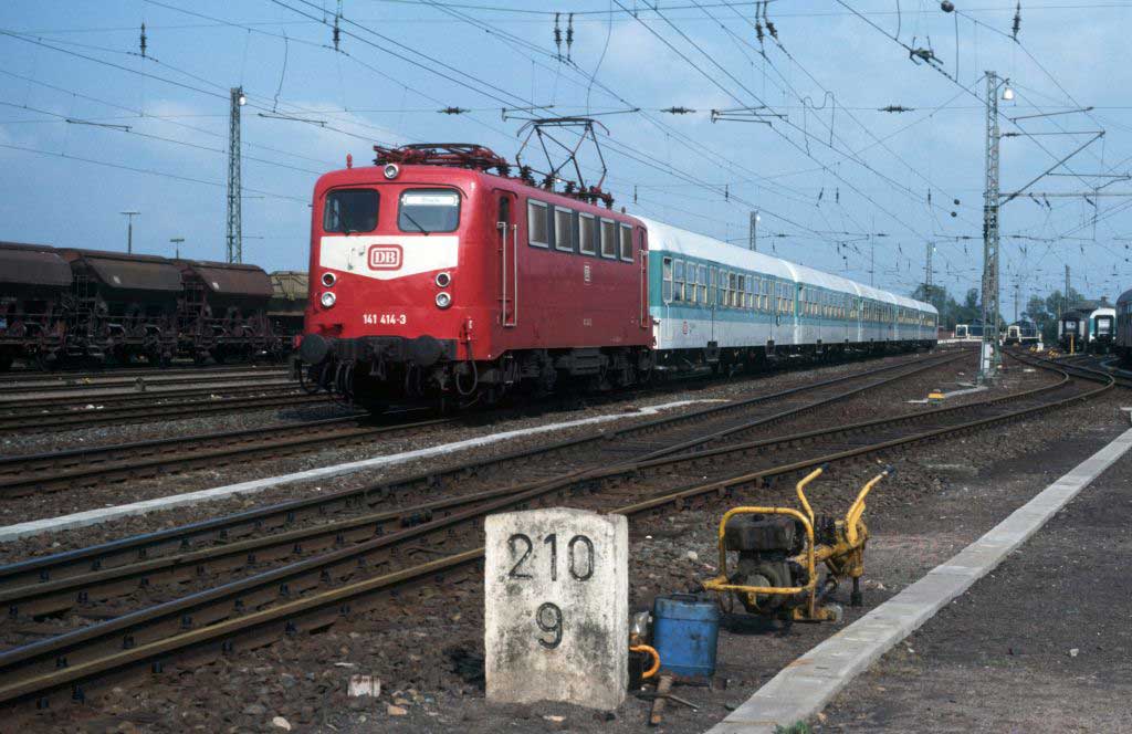 Bei der grünen Lok im Hintergrund handelt es sich um die 141 087