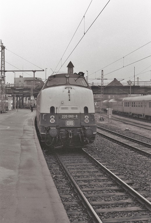 Cuxhaven, Stw. Cs am km 272,5 - 220 015 schiebt den abendlichen N 4469 aus dem Bahnhof