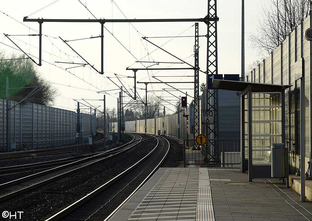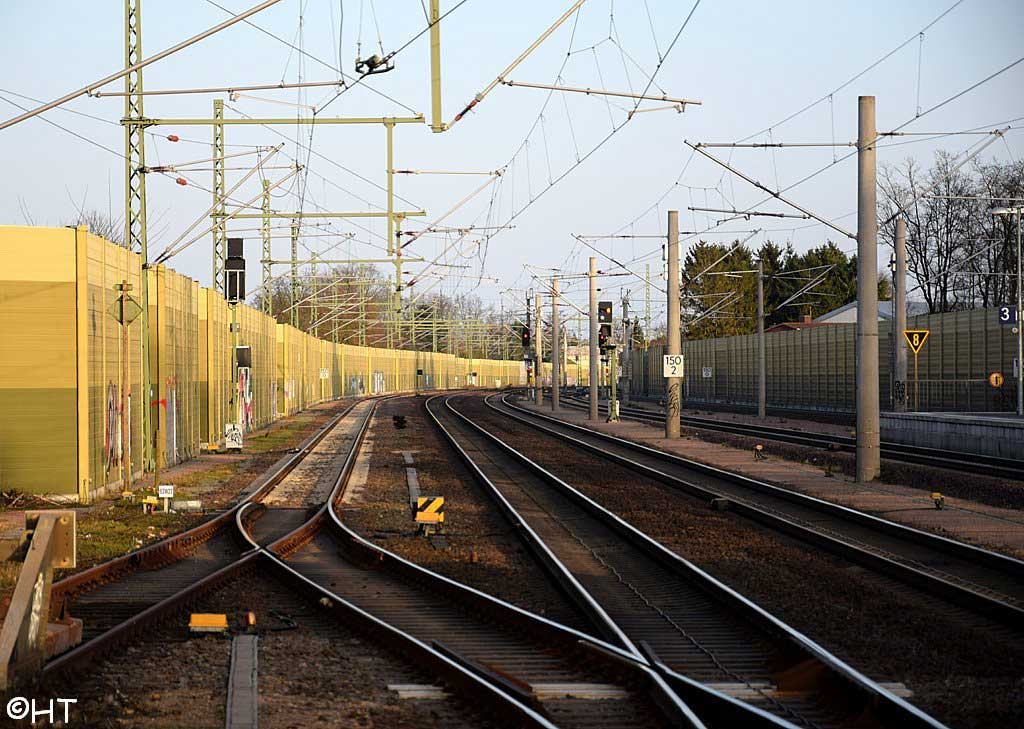 Im Hintergrund an der Schallschutzwand verläuft die Strecke