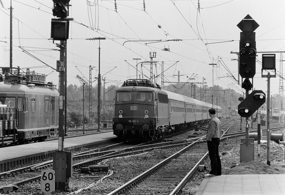 km 60,8 in Braunschweig Hbf - Einfahrt vom Westen auf Gleis 7 - 110 402 Foto: ICE, 04.06.1976 Das folgende Bild zeigt auch den Hektometerstein 60,8;